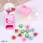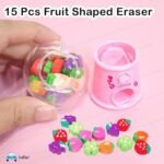 FunBlast Machine Eraser Set – 15 Pcs Fruit Shaped Eraser Dispenser Toy, Mini Kawaii Erasers for Kids, Fancy Erasers for School & Office, Stationery Supplies, Birthday Return Gift for Kids (Pink)