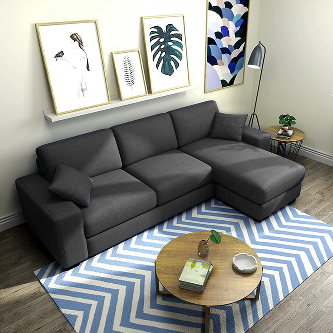 FURNY Dinoy 4 Seater Fabric RHS L Shape Sofa Set (Dark Grey)