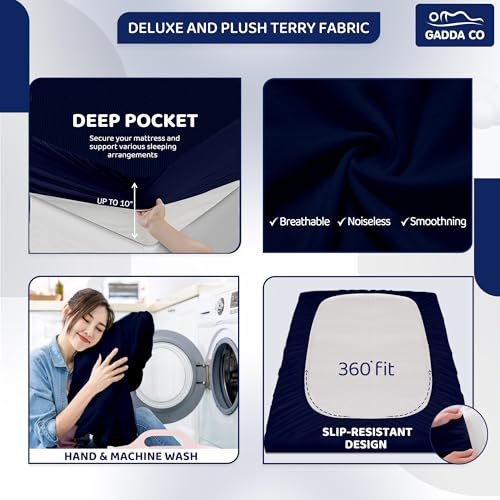 GADDA CO Ultra Soft Cotton Terry Waterproof Mattress Protector for Single Bed | Breathable & Hypoallergenic Mattress Cover | 78×36 in (6.5×3 ft), Dark Blue, Pack of 1
