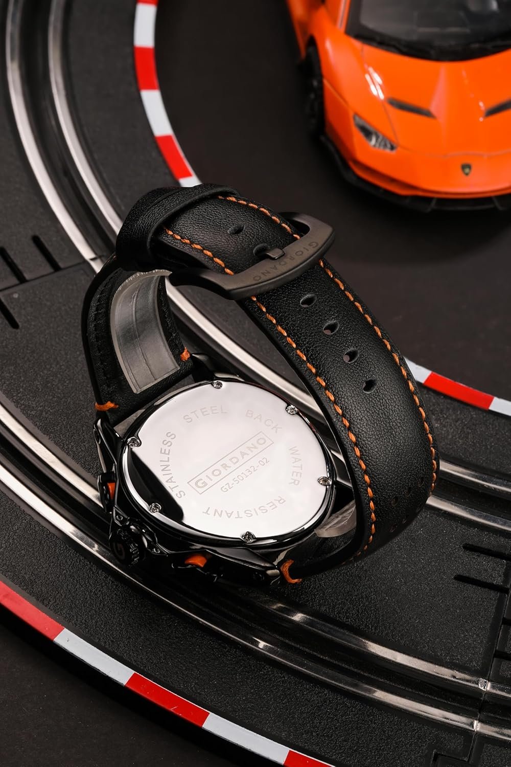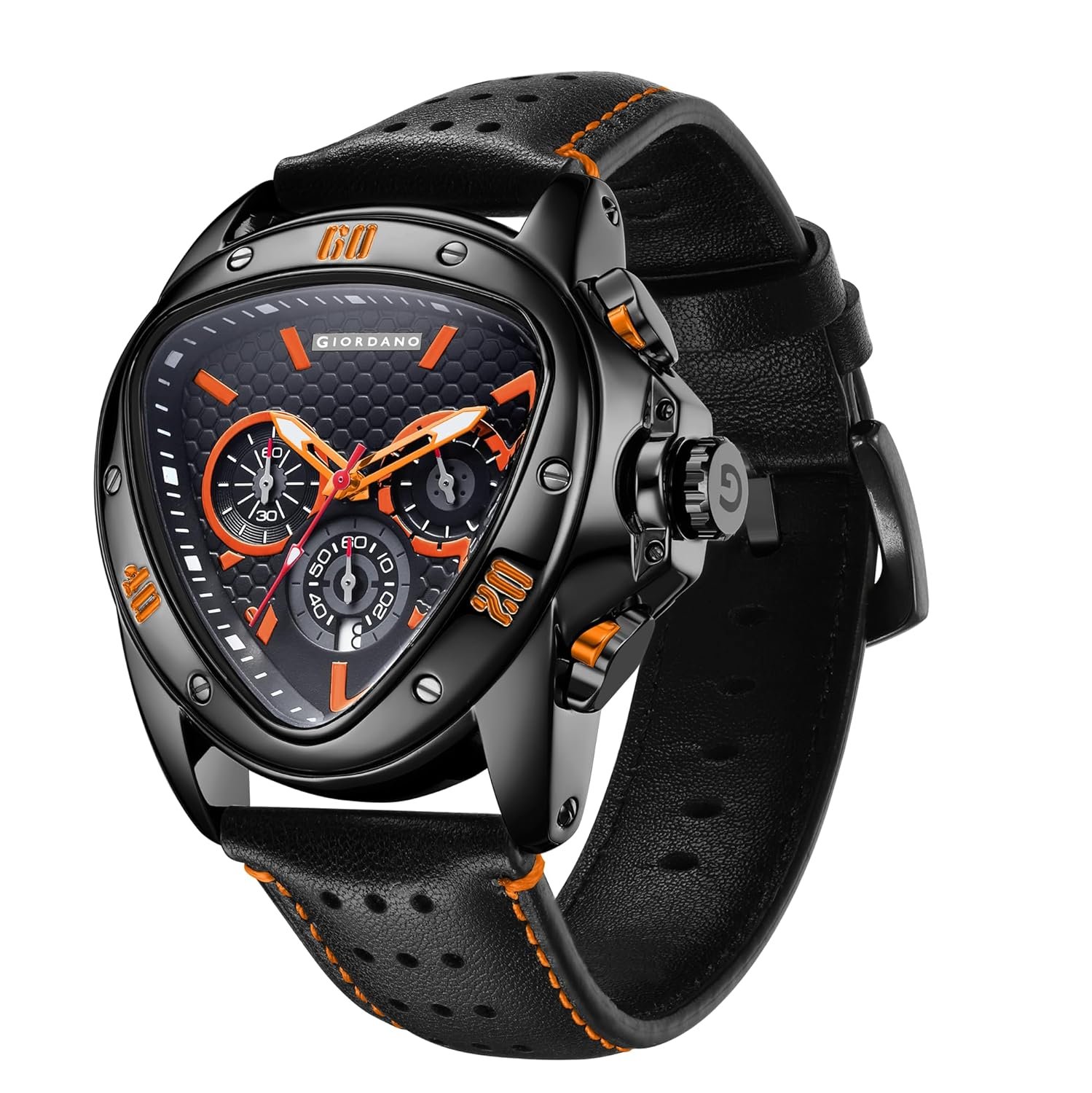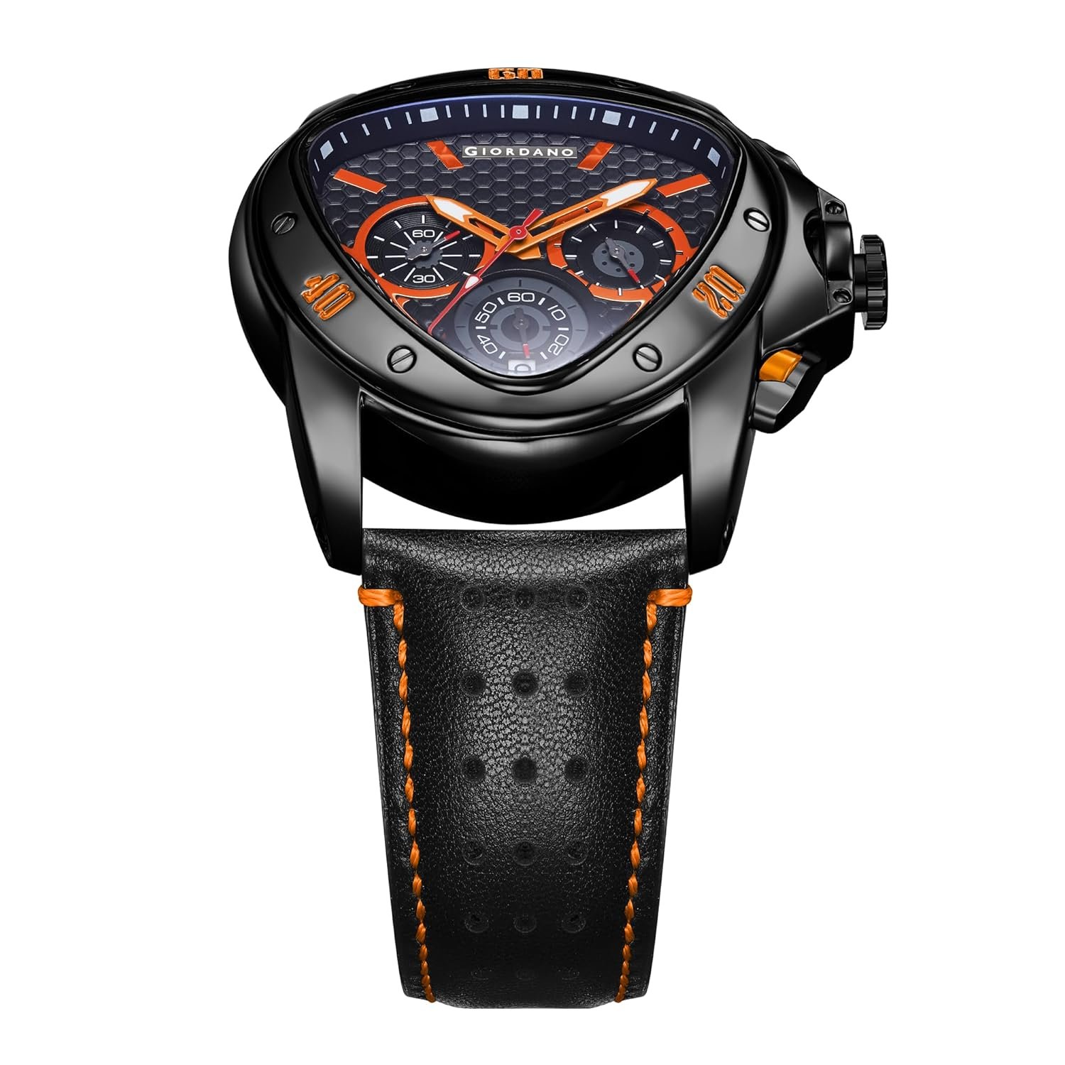Giordano Multi Function Watch for Men -Unique Triangle Dial, Dual-Date Display with Leather Strap