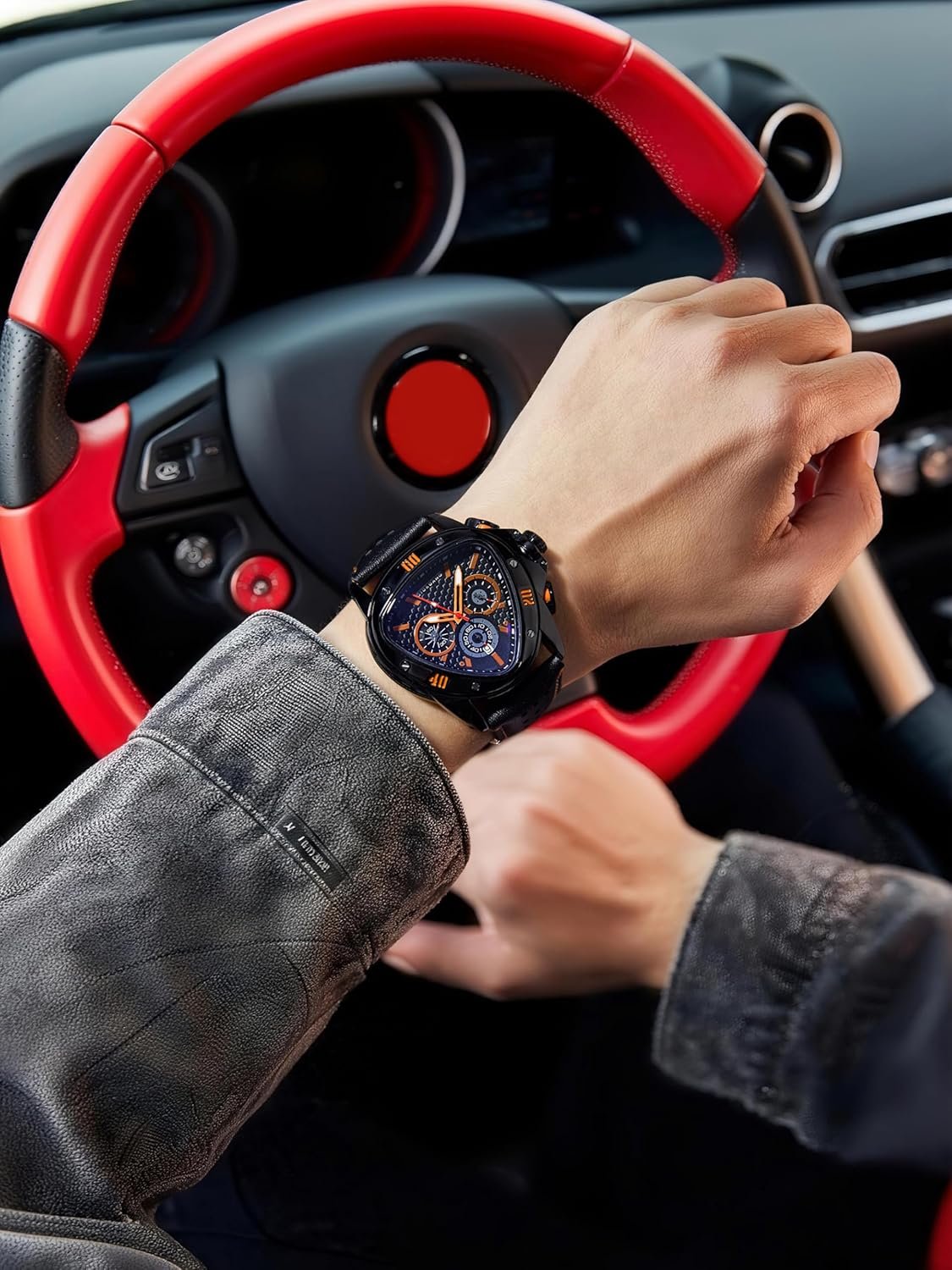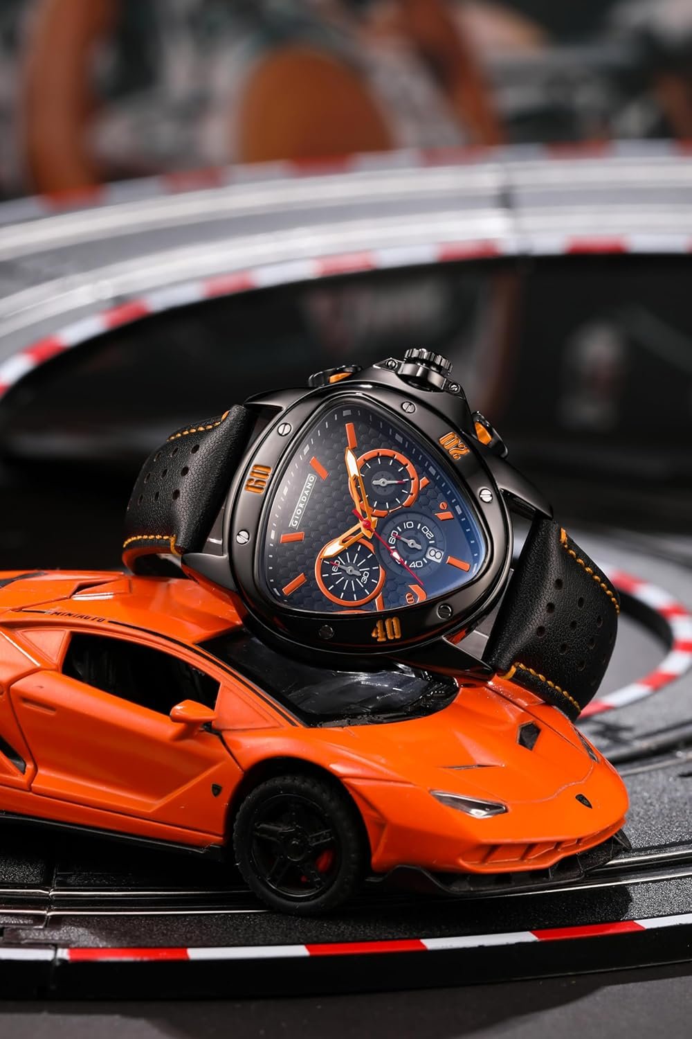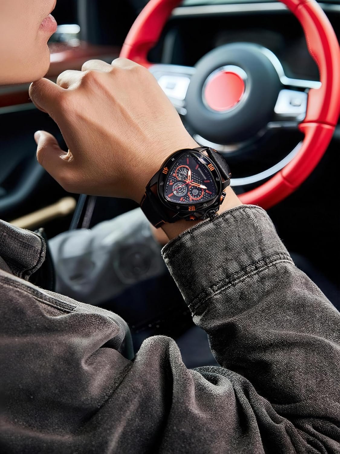 Giordano Multi Function Watch for Men -Unique Triangle Dial, Dual-Date Display with Leather Strap