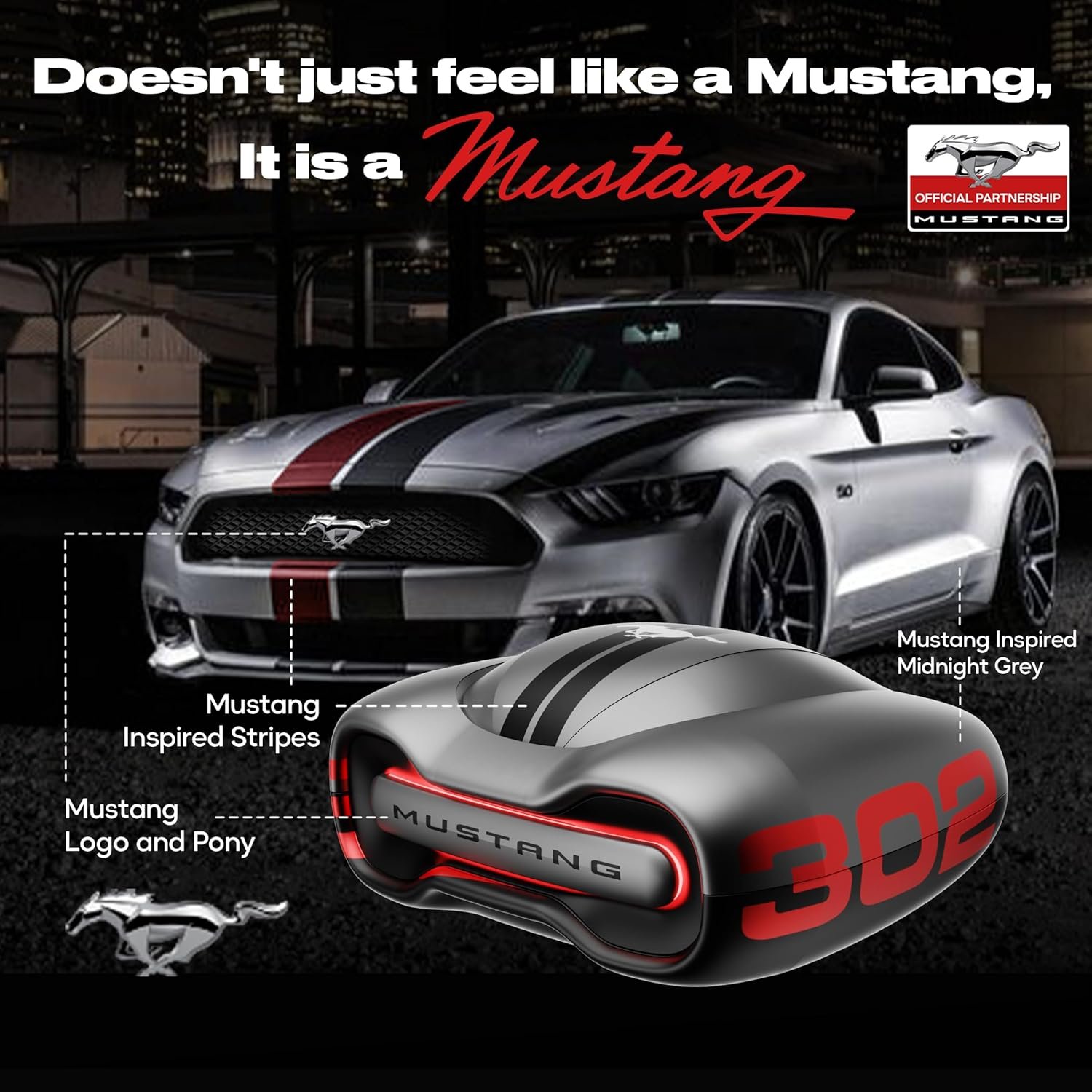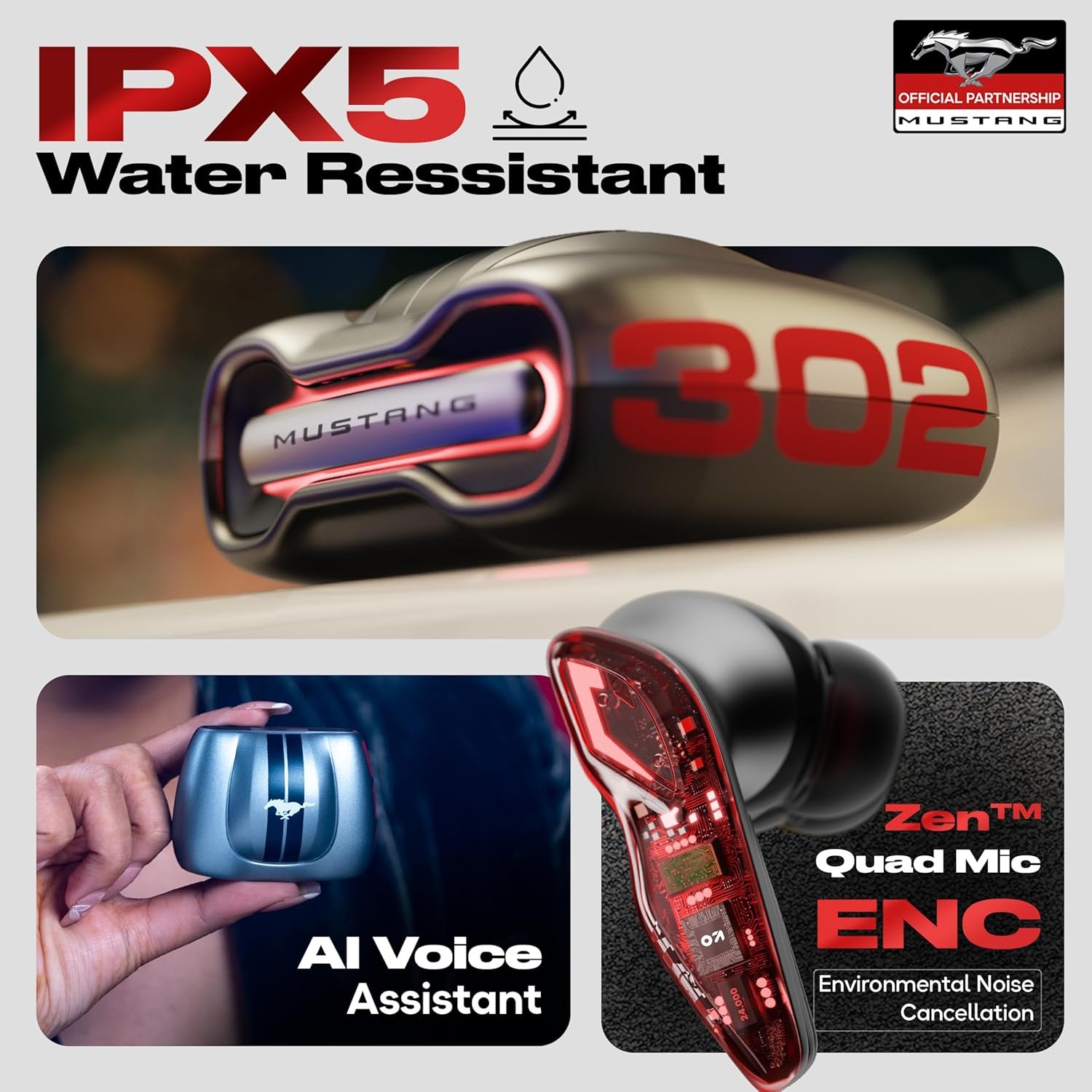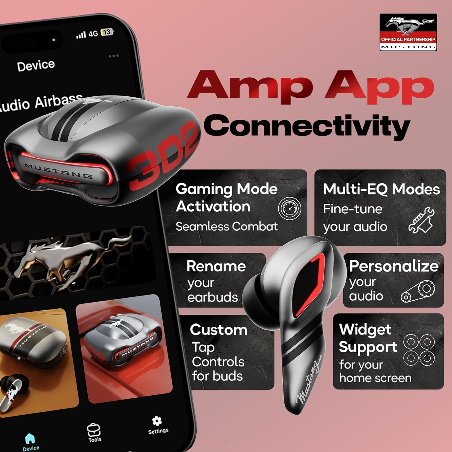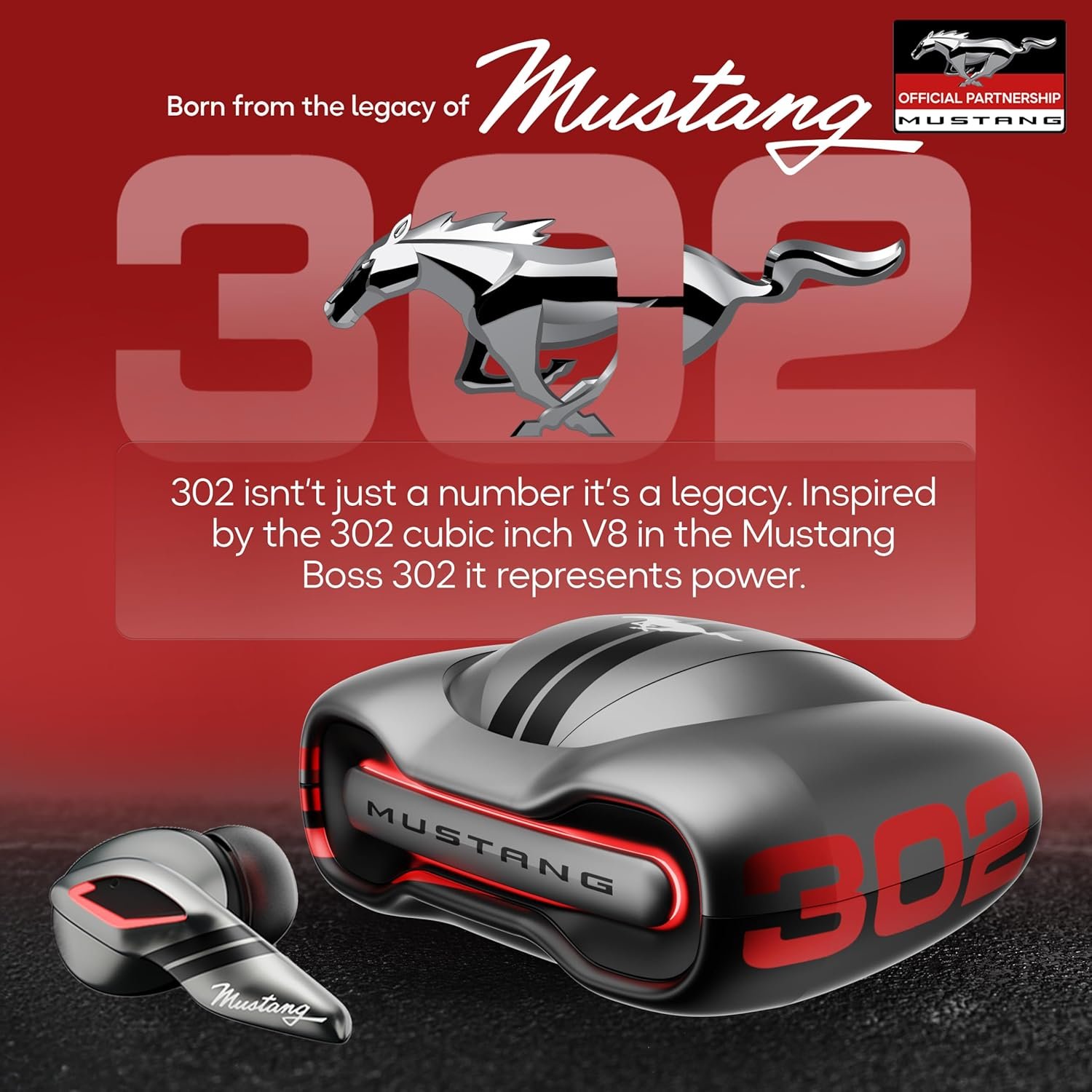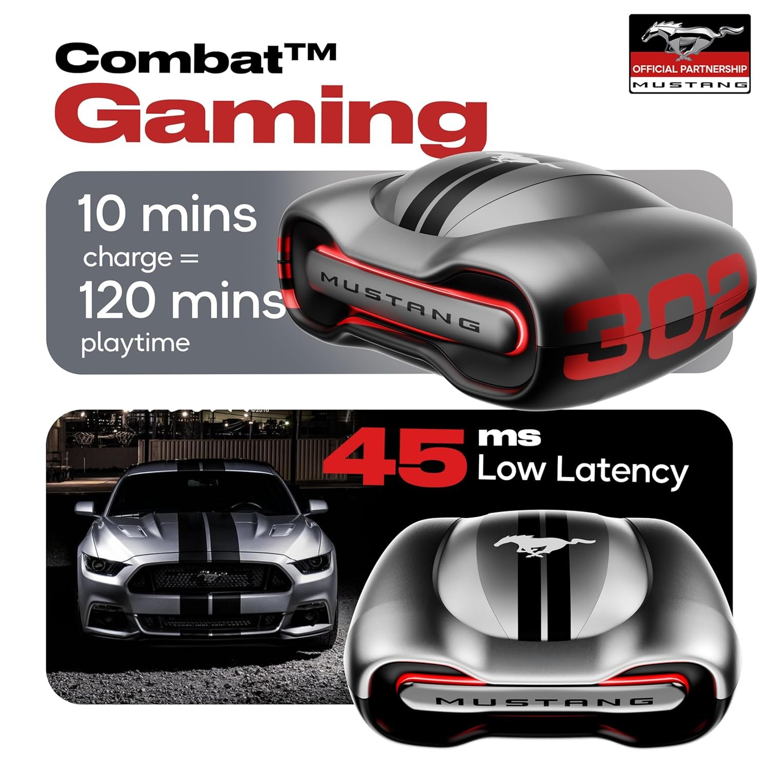 GOBOULT x Mustang Torq Wireless in Ear Earbuds with 60H Playtime, App Support, Quad Mic ENC, 45ms Low Latency, 13mm Driver, Breathing LEDs, Made in India Ear Buds Wireless (Silver)