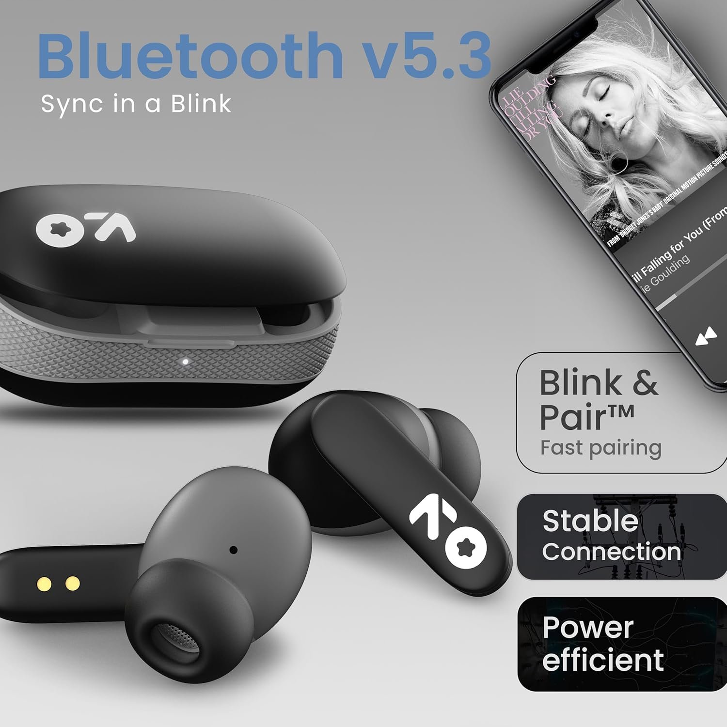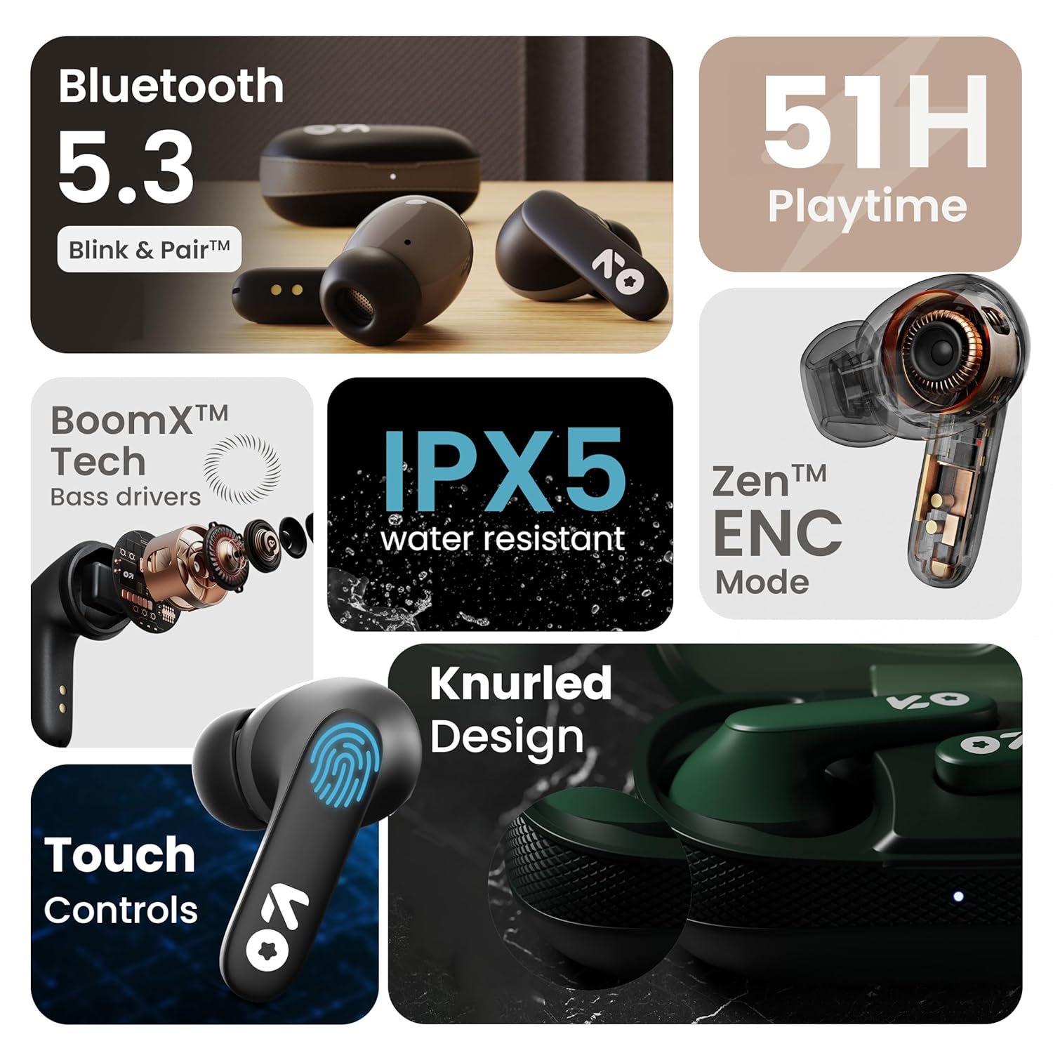 GOBOULT Z20 Made in India Bluetooth Ear Buds Wireless with 51H Playtime, Clear Calling ENC Mic, Low Latency Gaming, 10mm Drivers Earbuds Buds Bluetooth Wireless Earphones (Jet Black)
