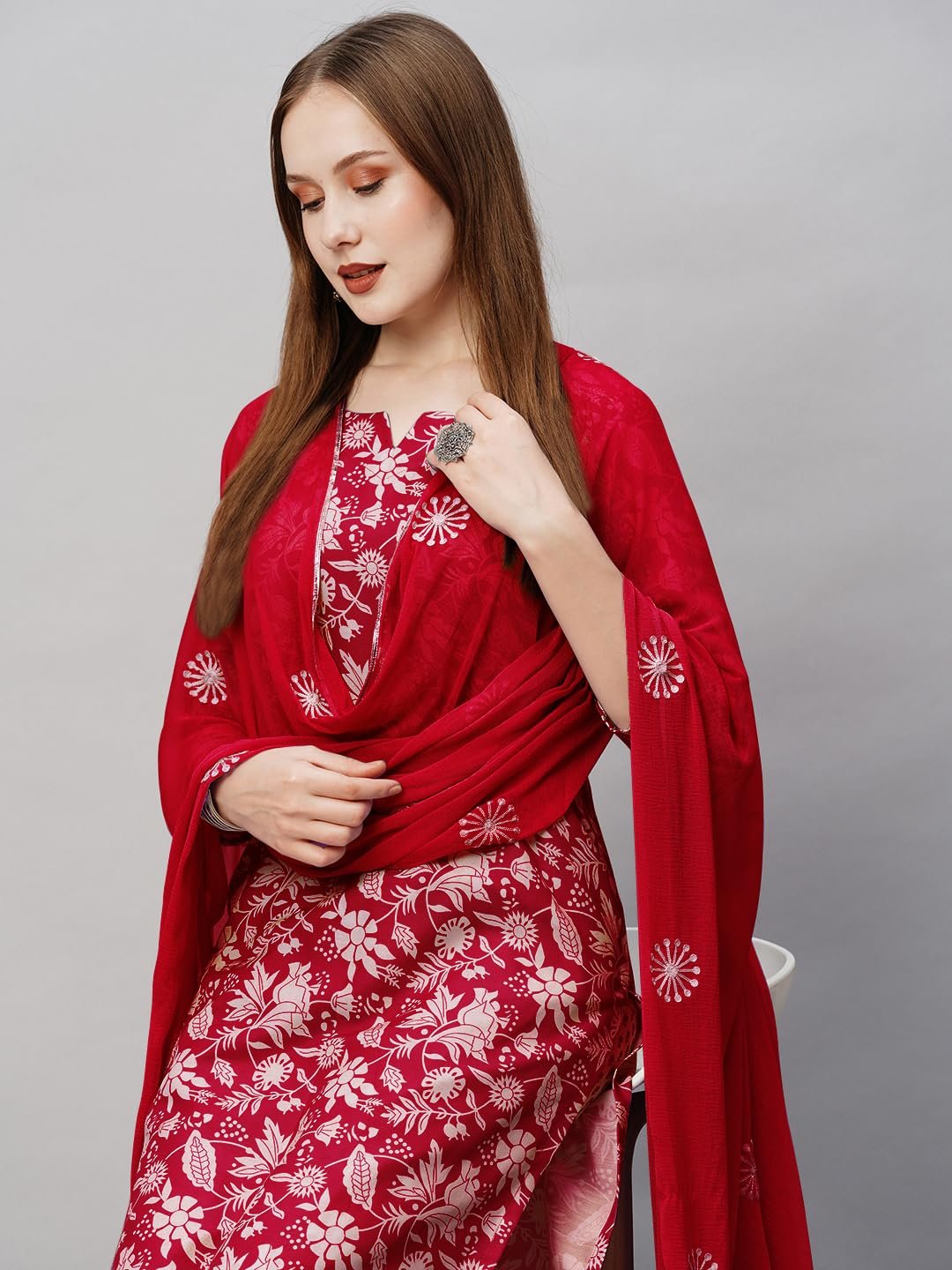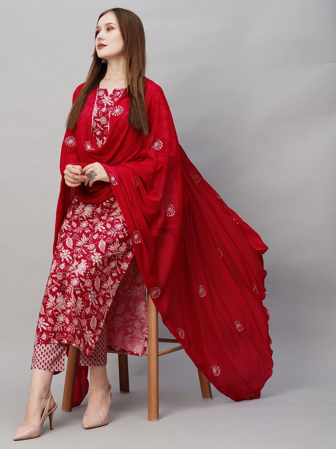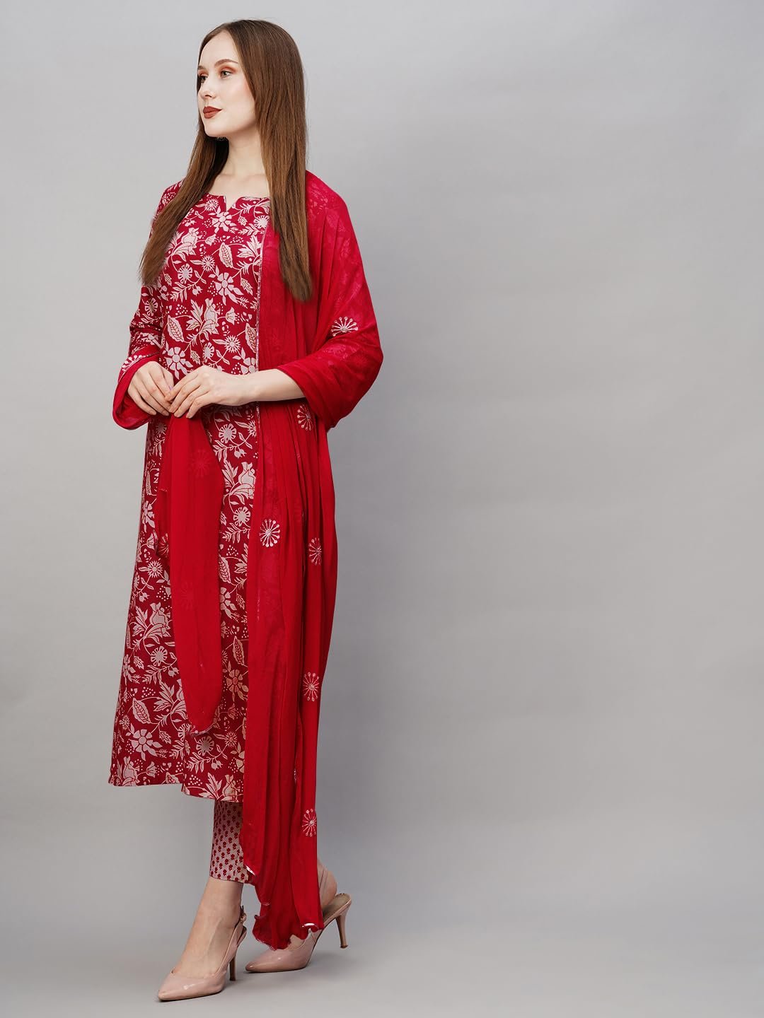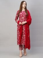 GoSriKi Women’s Cotton Blend Printed Straight Kurta with Pant & Dupatta