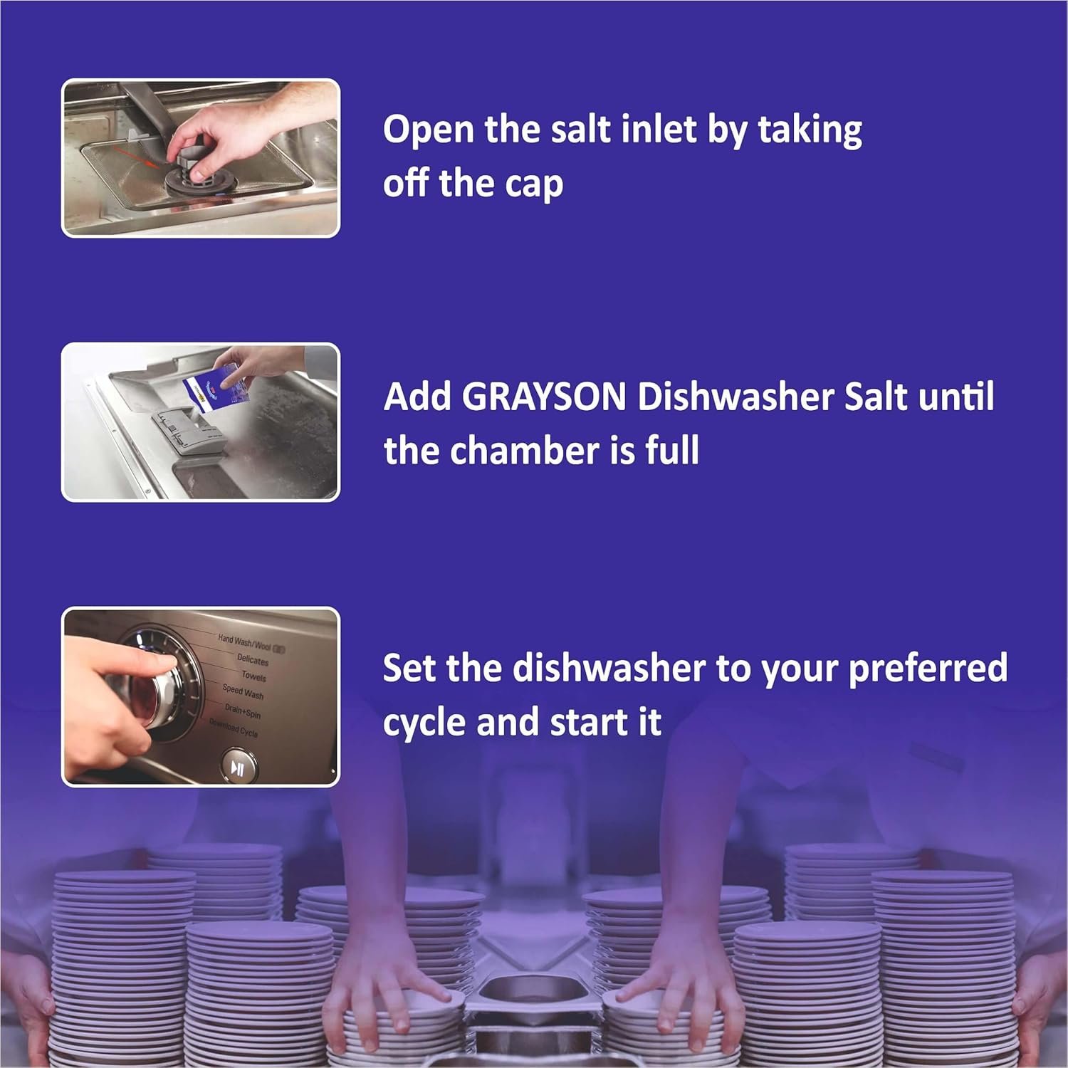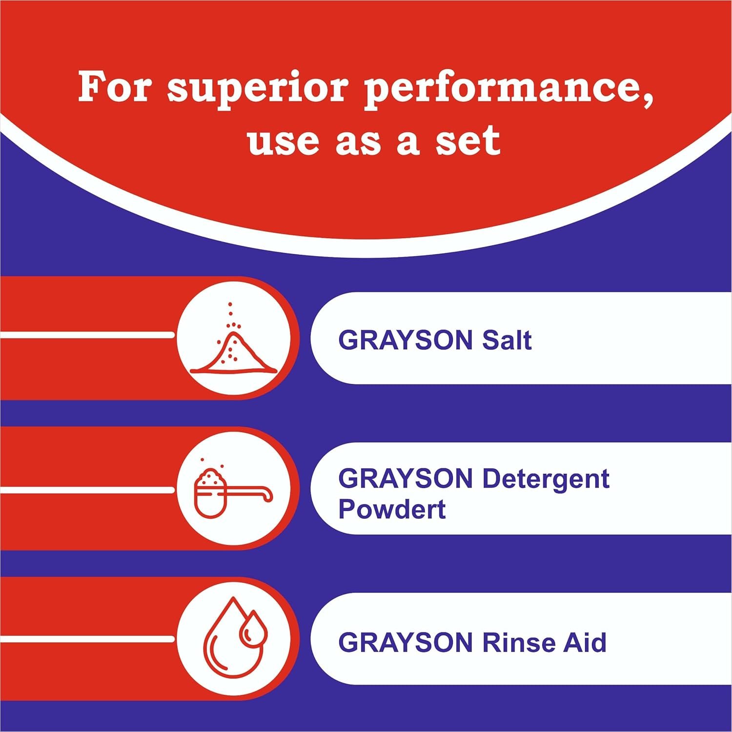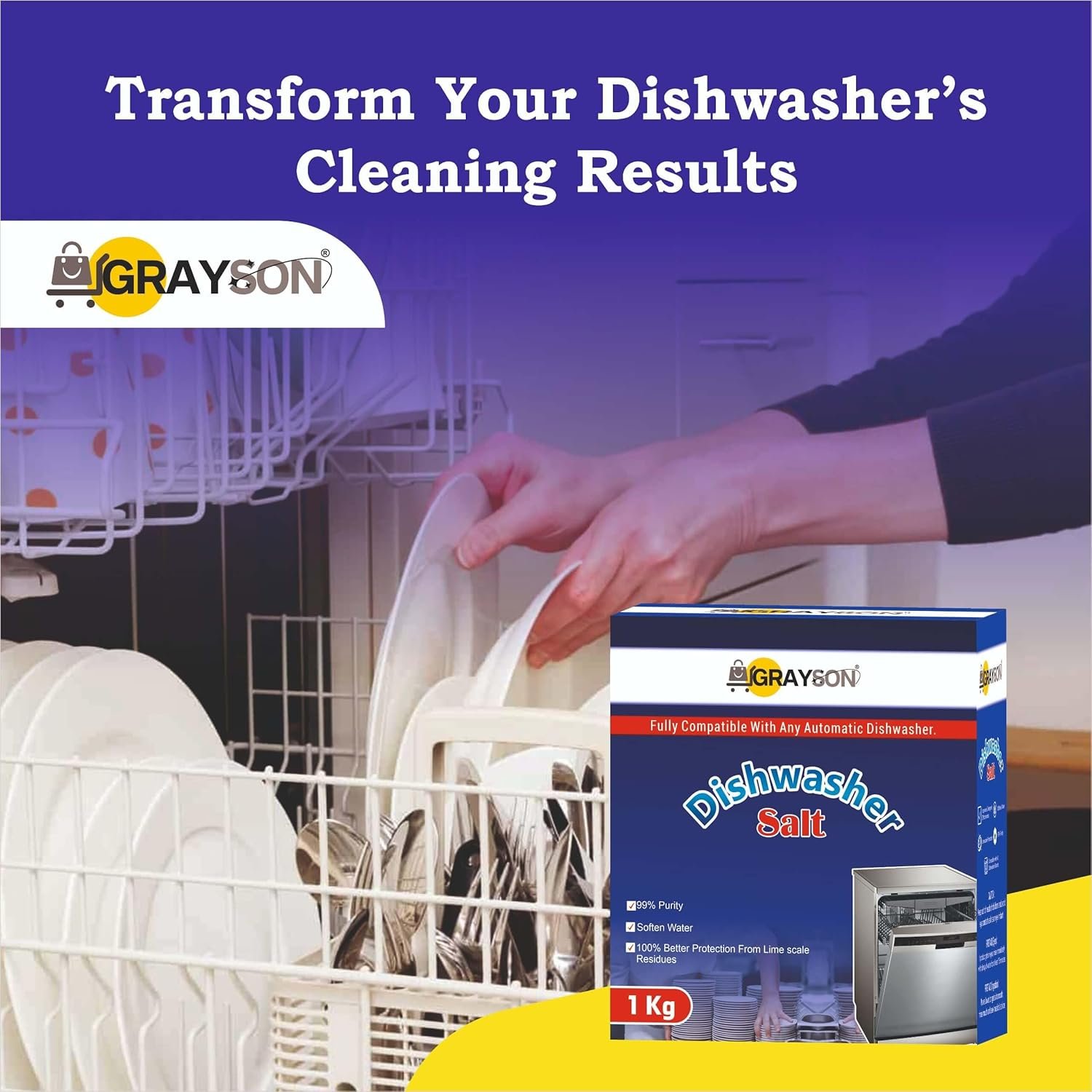 GRAYSON Dishwasher Salt | Salt For Dishwasher Machine | Salt Dishwasher | Softens Hard Water & Prevents Limescale, Enhances Detergent Performance, For All Dishwashers – 1 Kg (Pack Of 5)