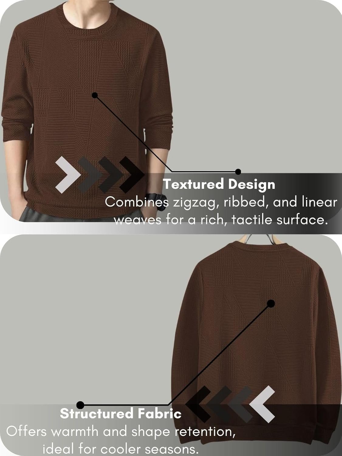GRECIILOOKS Full Sleeve T Shirt for Men | Casual T-Shirts for Man|Poly Cotton Textured Oversized Fit T-Shirt | Round Neck T-Shirt’s