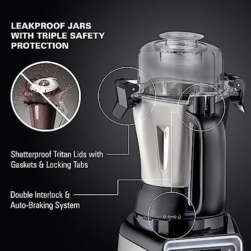 Hamilton Beach Professional Juicer Mixer Grinder 58770-IN, 1400 Watt Rated Motor, Triple Overload Protection, 3 Stainless Steel Leakproof Jars, Triple Safety Protection, Intelligent Controls, Black