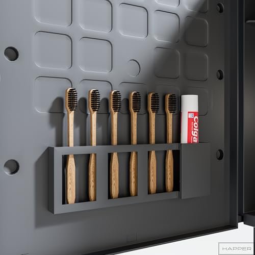 Happer Plastic Premium Multipurpose Wall Mounted Storage Cabinet with Mirror, Prime Look (Black)