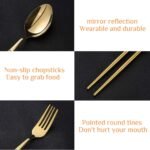 HASTHIP® Premium Gold Stainless Steel 410 Fork Spoon Three Piece Set Spoon Fork Chopsticks Outdoor Gift Set Flatware with Gift Box Dinnerware Cutlery Set Tableware Set (Black Gold)