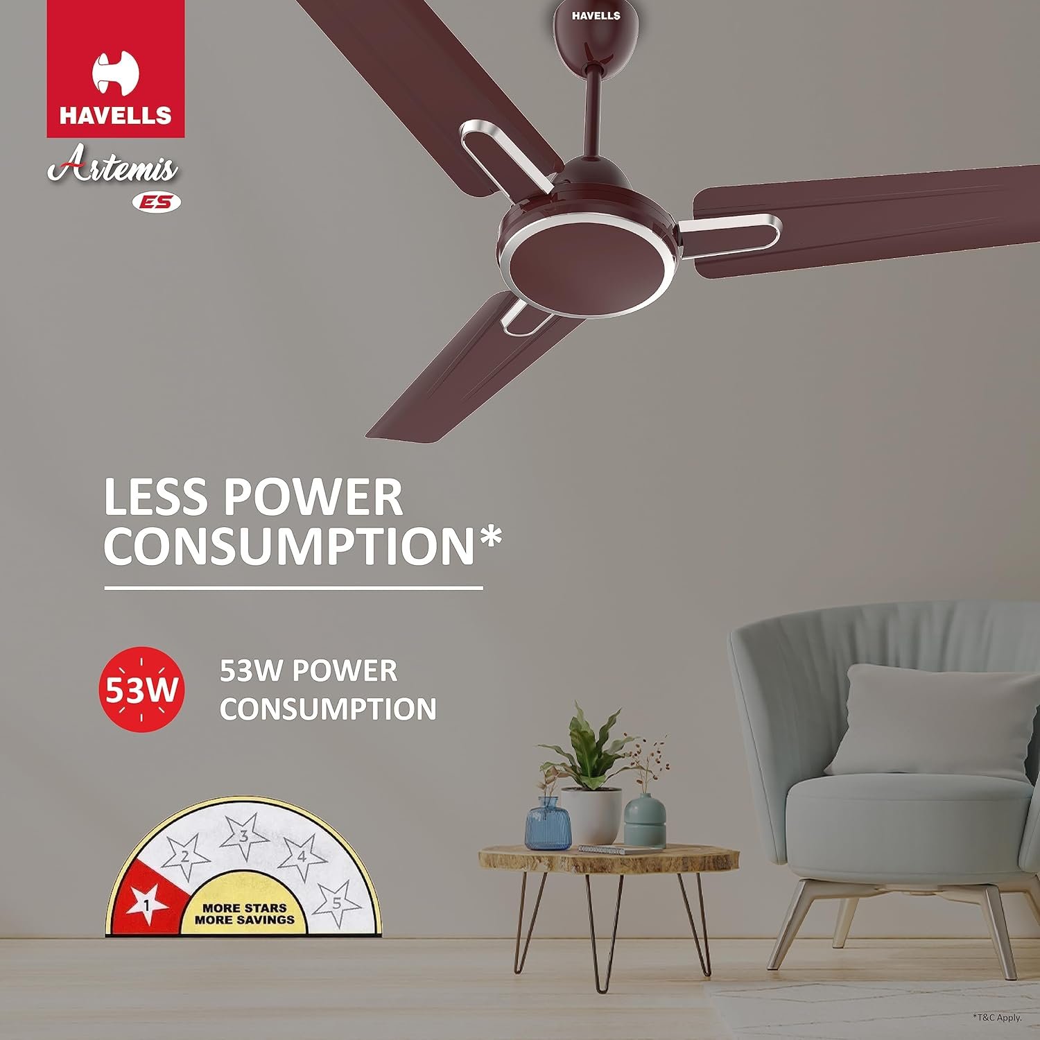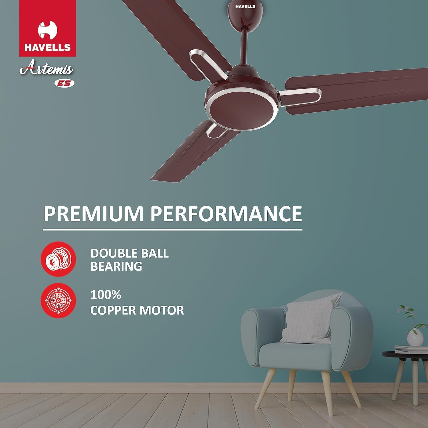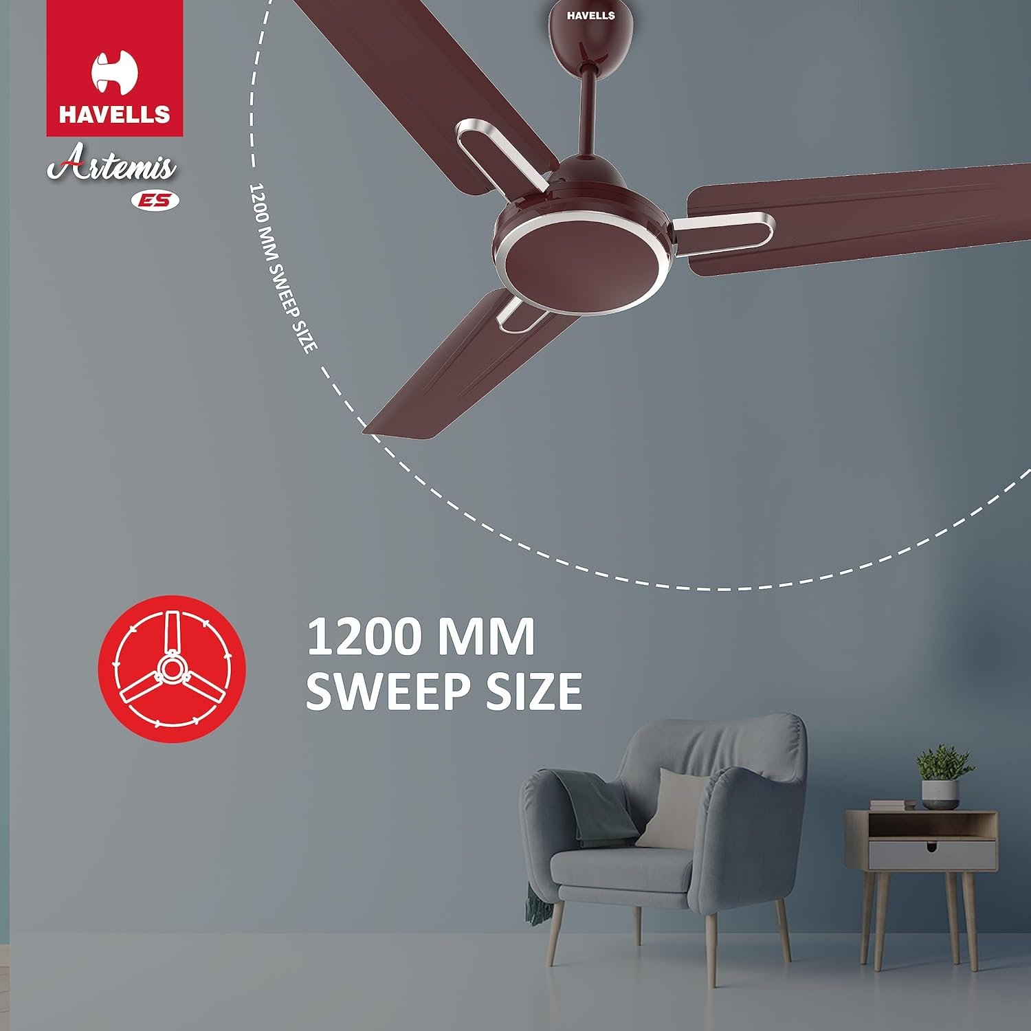 Havells Artemis ES 1200mm Ceiling Fan| Double Ball Bearing| High Air Delivery 380 RPM| Air Flow: 220CMM| 30W Wattage| Ripped Aerodynamic Blades| 2 Years Manufacturer Warranty (Brown), 1 Star