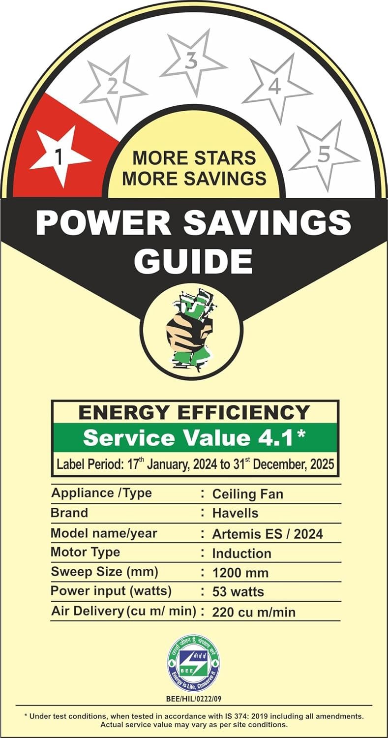 Be the first to review “Havells Artemis ES 1200mm Ceiling Fan| Double Ball Bearing| High Air Delivery 380 RPM| Air Flow: 220CMM| 30W Wattage| Ripped Aerodynamic Blades| 2 Years Manufacturer Warranty (Brown), 1 Star”