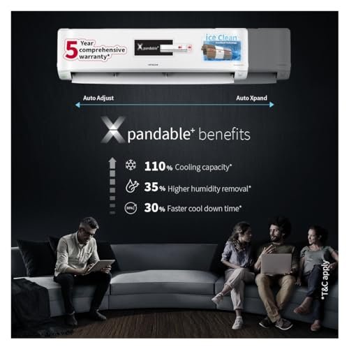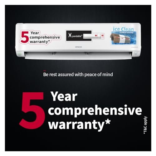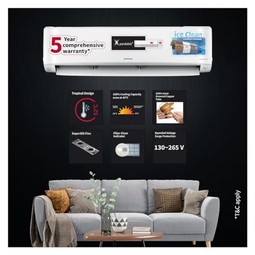 Hitachi 1.5 Ton Class 5 Star, ice Clean, Xpandable+, Inverter Split AC with 5 Year Comprehensive Warranty* (100% Copper, Dust Filter, 2024 Model – 5400FXL RAS.G518PCBIBF, White)