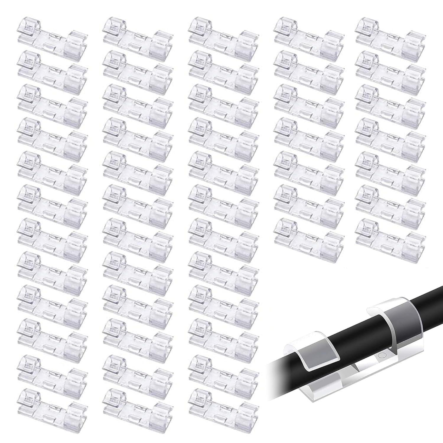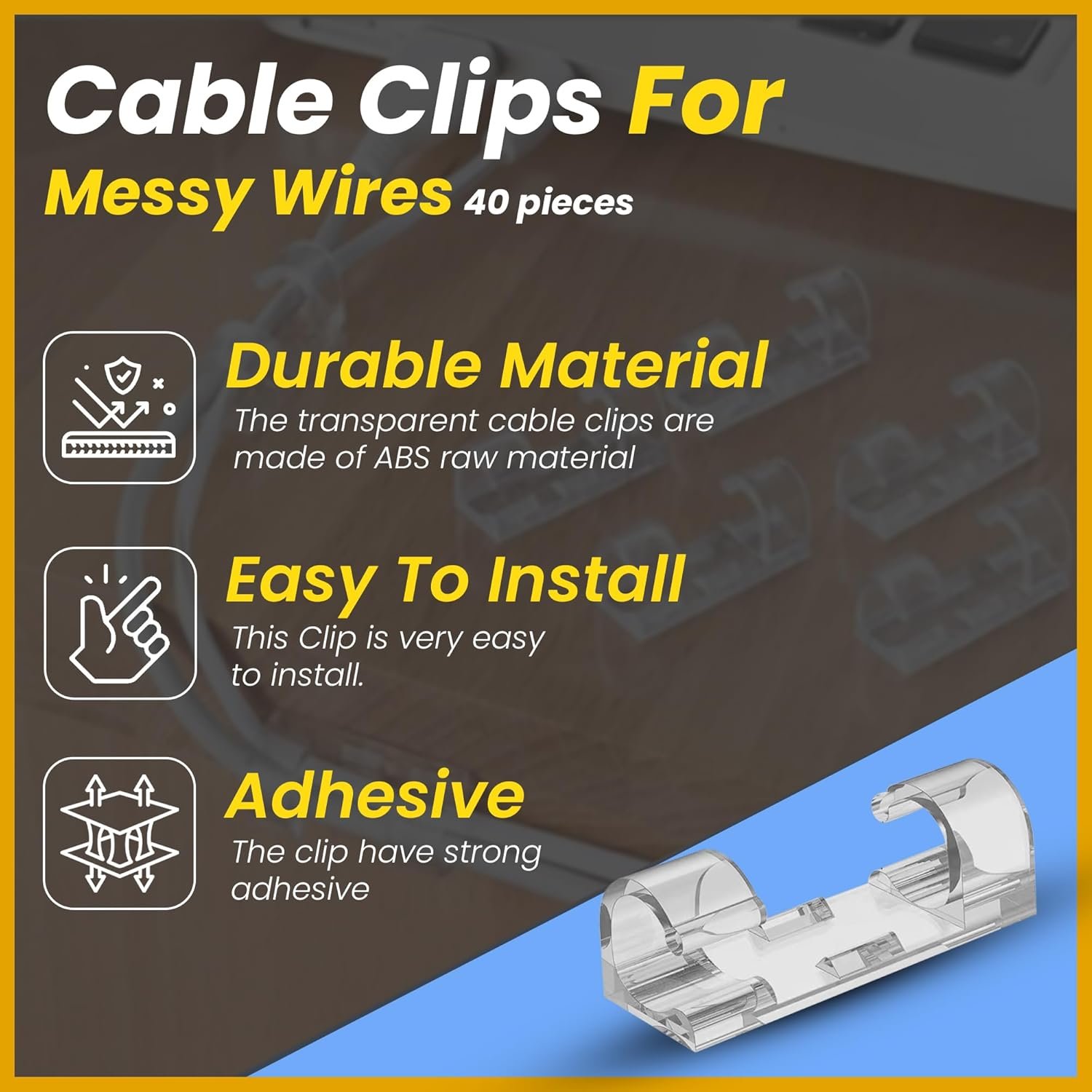 Homeaura 40 Pcs Cable Clips for Wire Management on Wall | Self-Adhesive Wire Organizer Clips for Wall Desk Office Home | Heavy Duty Cable Clips for Laptop Computer | Transparent Wire Clips (9mm)