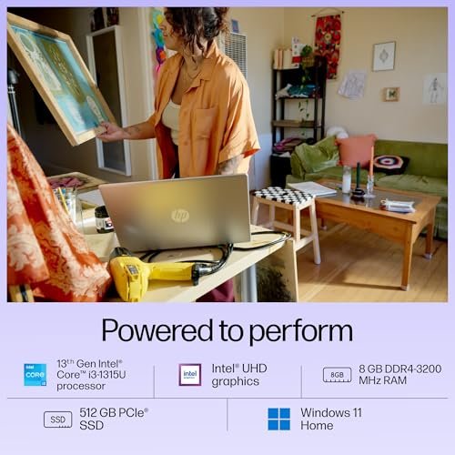 HP 15, 13th Gen Intel Core i3-1315U Laptop (8GB DDR4, 512GB SSD) Anti-Glare, Micro-Edge, 15.6″/39.6cm, FHD, Win 11, MSO 21, Silver, 1.59kg, Intel UHD Graphics, 1080p FHD Camera, 15-fd0006TU/fd0186tu