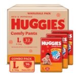 Be the first to review “Huggies Comfy Pants Baby Diaper, Large (L) Size (9-14 Kgs), Pack of 96 (32 Count, Pack of 3)”