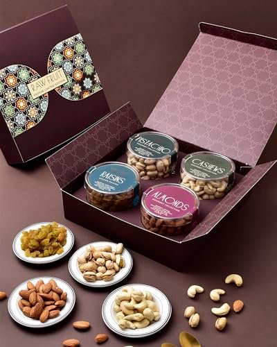 HyperFoods® Diwali Gifts for Family and Friends DryFruits Gift Box Small Pet Jars Pack Of 4 DryFruits Almonds Cashews Pistachios Raisins Nuts and Dry Fruits Combo Dry Fruits Combo Pack