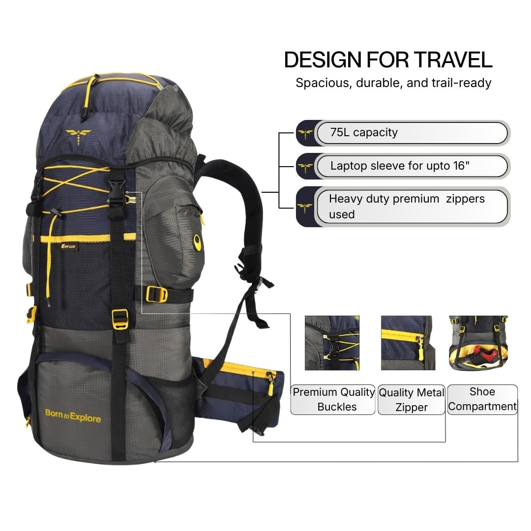 Impulse rucksack bags 75 litres travel bag for men tourist bag for travel backpack for hiking trekking Bag for men camping thames blue bag with 1 Year Warranty