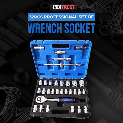 Inditrust new 32pcs/set Heavy duty ½” Rachet Professional Wrench Socket Set Hardware Car Boat Motorcycle Repairing Tools Kit Multitool Hand Tools Car-Styling & Plastic Toolbox Storage Case Socket Set