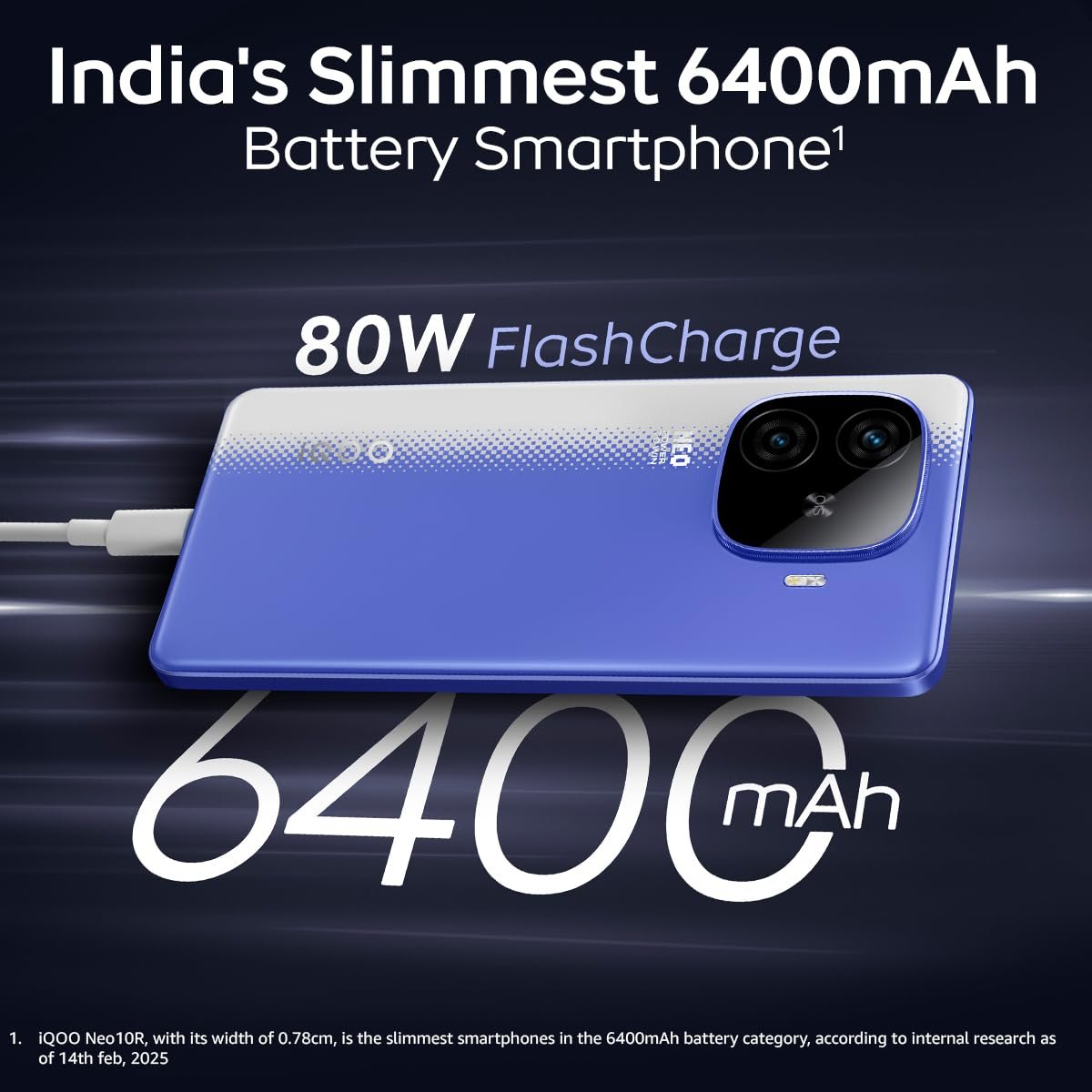 iQOO Neo 10R 5G (Raging Blue, 12GB RAM, 256GB Storage) | Snapdragon 8s Gen 3 Processor | India’s Slimmest 6400mAh Battery Smartphone | Segment’s Most Stable 90FPS for 5 Hours