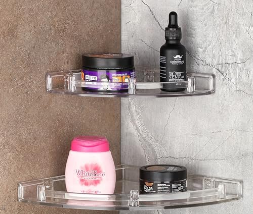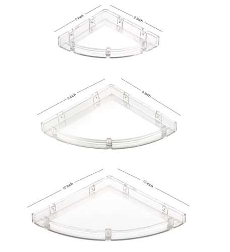 iSTAR Plastic Wall Mounted Corner Shelf for Bathroom Multipurpose Bathroom Accessories Organizer Shelves (6 inch, 8 Inch, 10 Inch, Pack of 3, Transparent)
