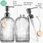 JASAI 2PACK 18 Oz Glass Soap Dispenser with Rust Proof Stainless Steel Pump, Refillable Hand Soap Dispenser with Vertical Stripe, Premium Bathroom soap Dispenser for Kitchen & Bathroom