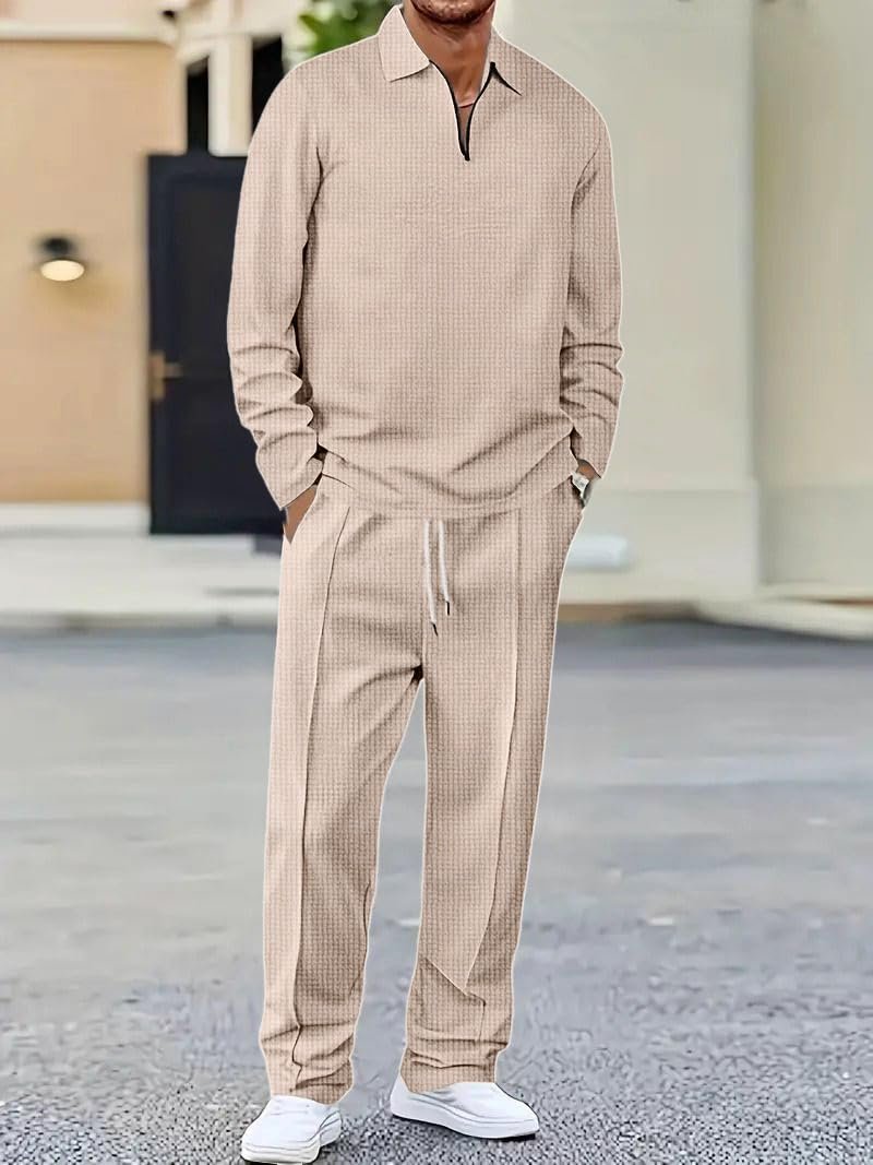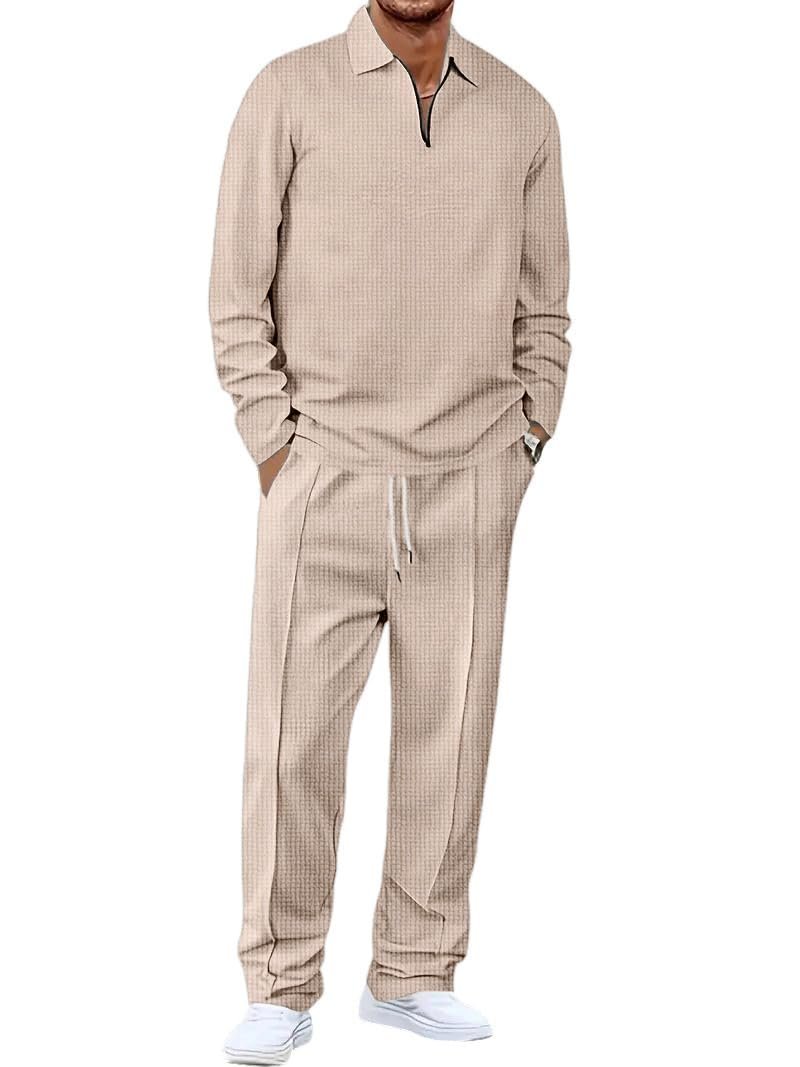 Jawdrobe Men’s Waffle-Check Co-Ord Set | Self-Textured Collar Top | Drawstring Jogger Pants | Cotton-Blend Loungewear/Night-Suit | Casual Travel & Streetwear Two-Piece