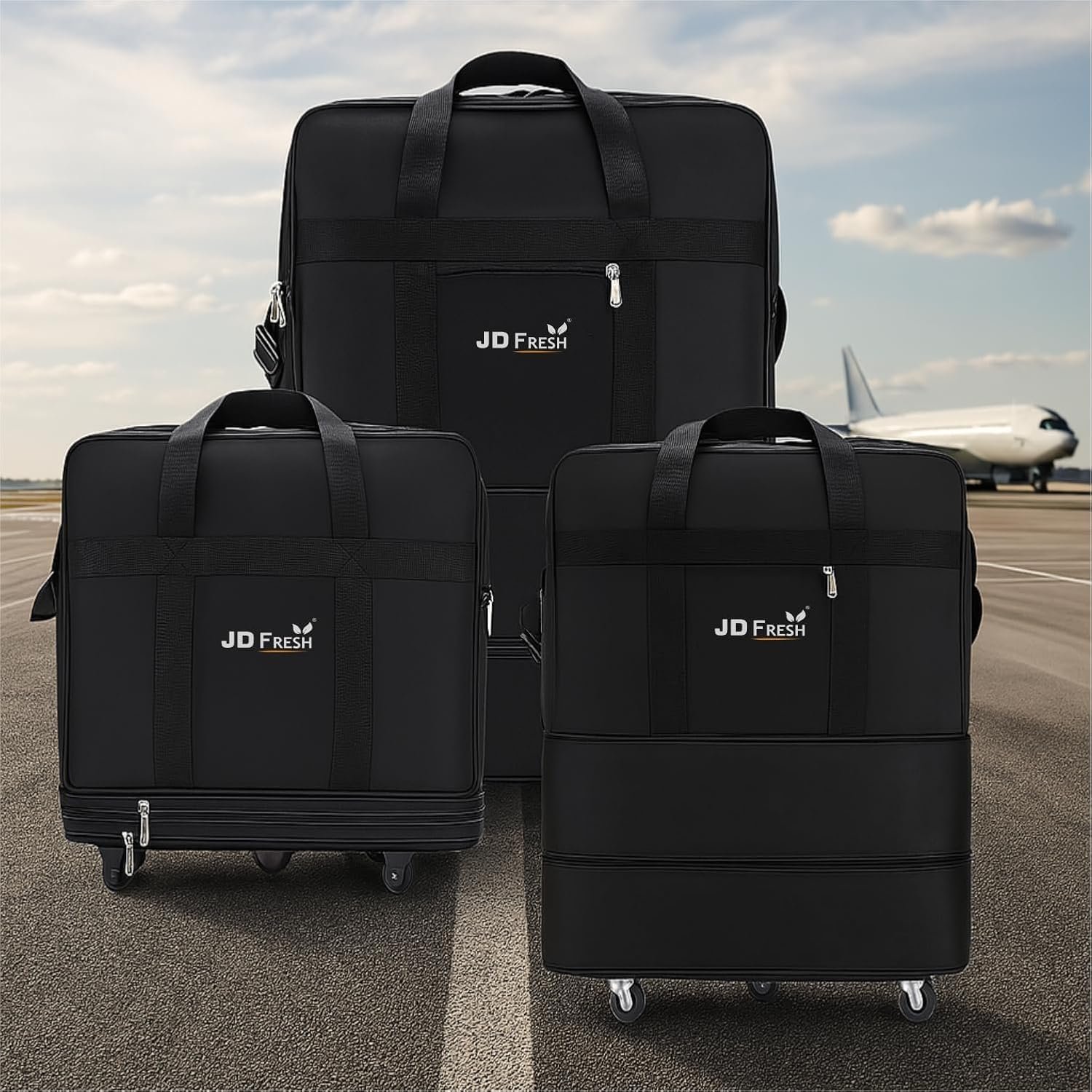 JD FRESH 3 Layer Expandable Duffle Bags/90 cm Nylon Convertible Travel Luggage with Wheels/Waterproof Traveling Bag for Clothes/Foldable and Extendable Duffle Luggages for Men and Women – Black