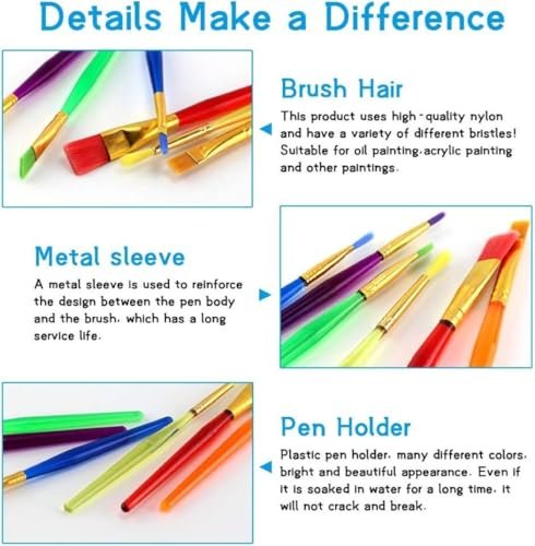 Kabeer Art Set of 6 Different Sizes Synthetic Paint Brush for Nail Brush Art, Acrylic and Watercolor Painting