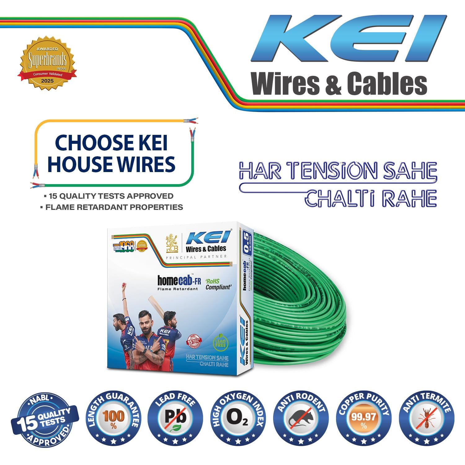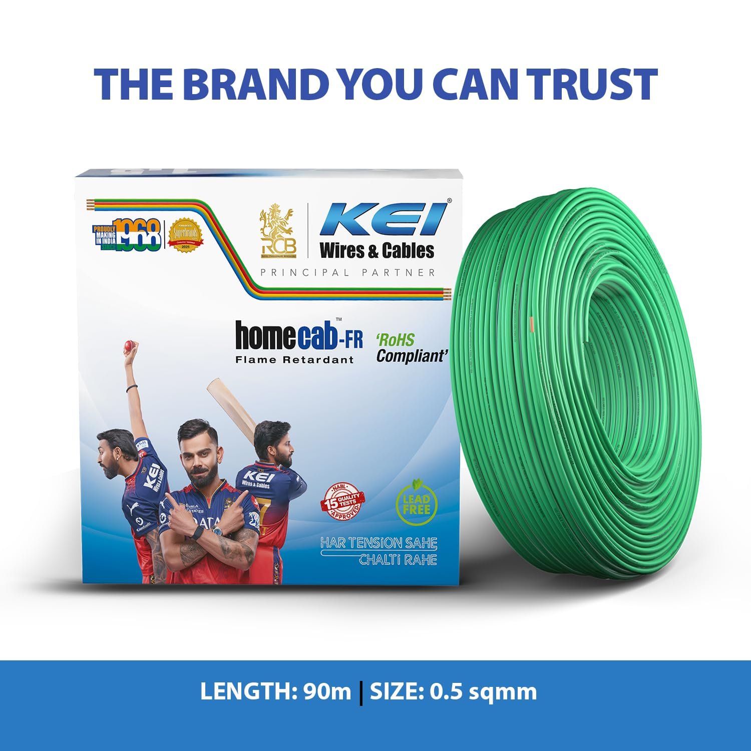 Be the first to review “KEI WIRES & CABLES Homecab 0.5 sqmm 1 Core Copper Flame Retardant House Wire PVC Insulated Cable for Domestic & Industrial Electrical Wiring (Green, 90 Meters)”