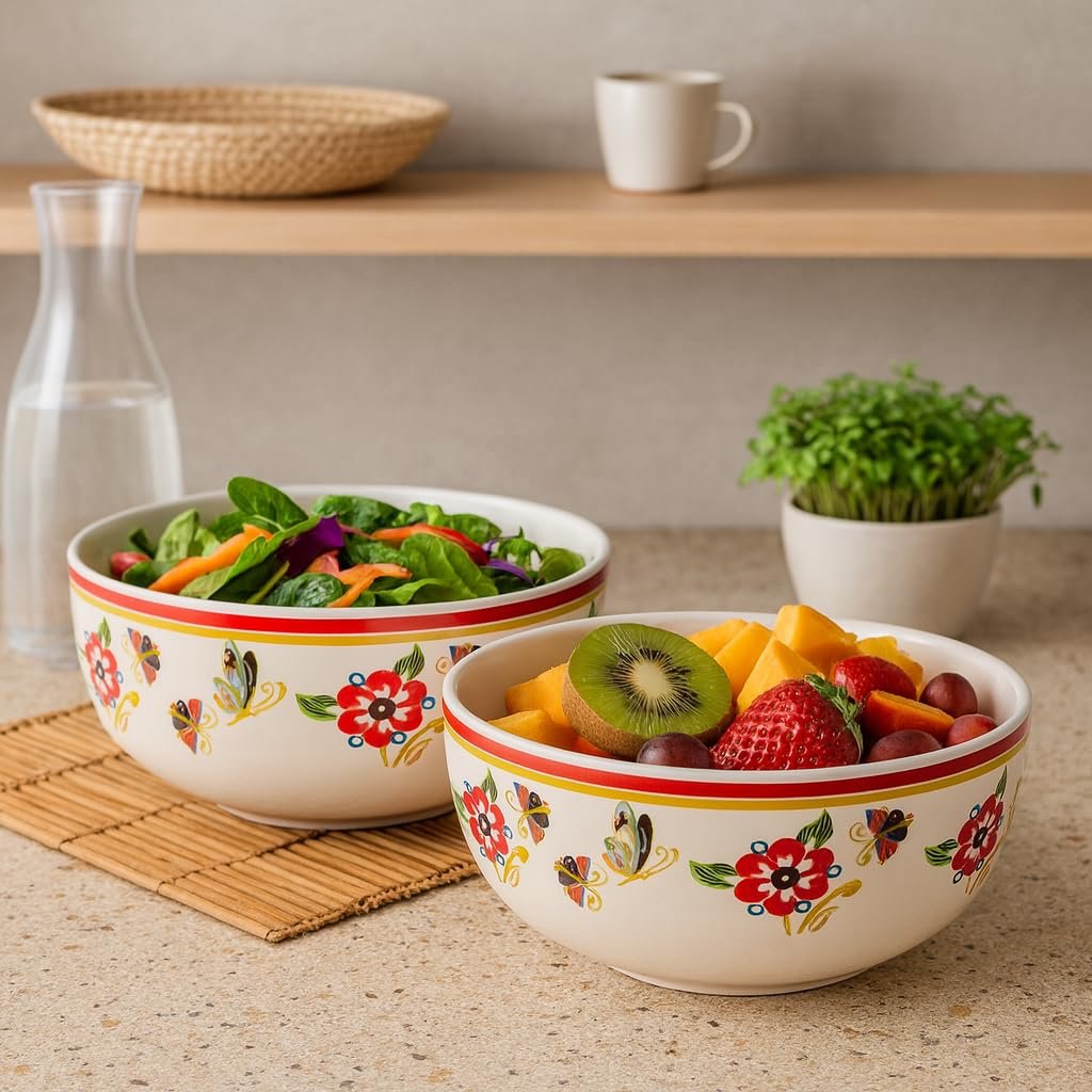 Be the first to review “KITTENS Ceramic Serving Bowls Set of 4 – 400ml Each – Handcrafted Floral & Butterfly Print – Glossy Finish – Microwave & Dishwasher Safe – Food Grade – for Soup, Curry, Snacks, Diwali & Daily Use”