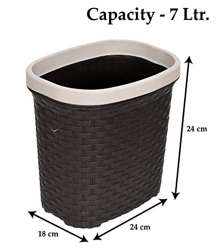 Kuber Industries Plastic Open Plastic Dustbin Without Lid|Garbage Bin, Trash Can, Waste Bin, 7 Litre (Brown)