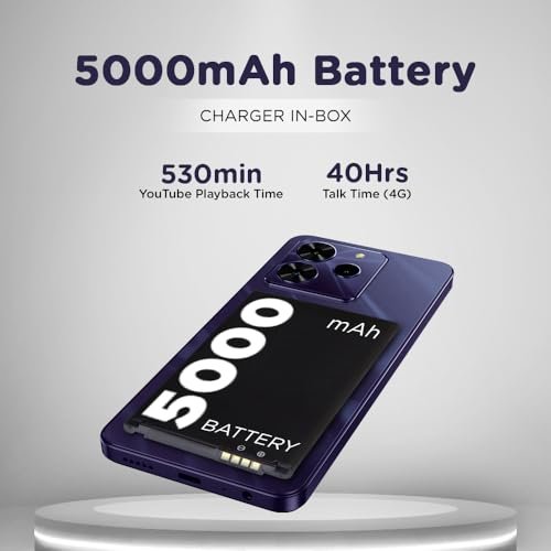 Lava O3 Pro (Glossy Purple, 4 GB RAM, 128 GB Storage)| Bigger 6.56″ HD+ Display | 50 MP AI Triple Rear Camera | 8 MP Front Camera| 5000 mAh Battery | 10W Charging | Charger in Box