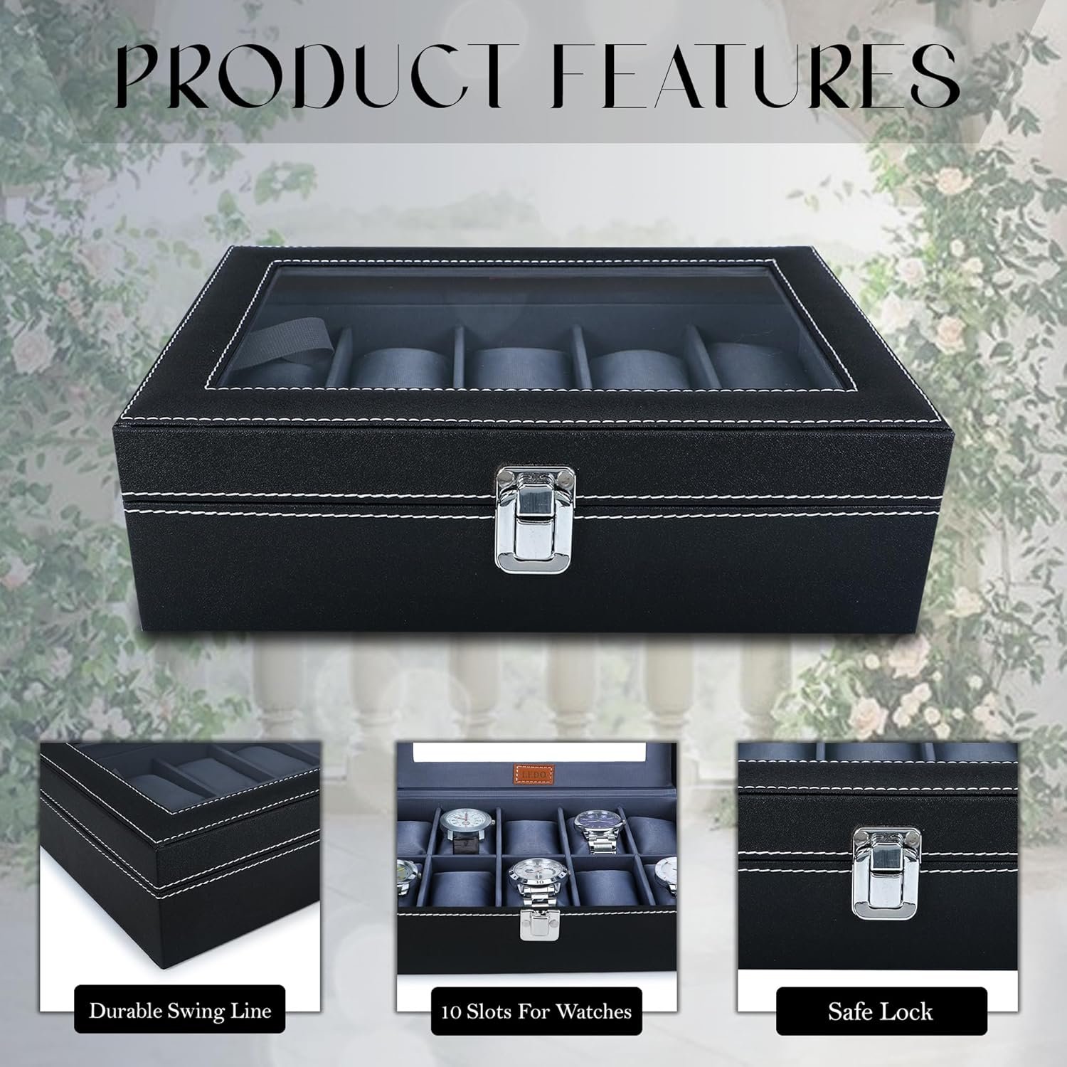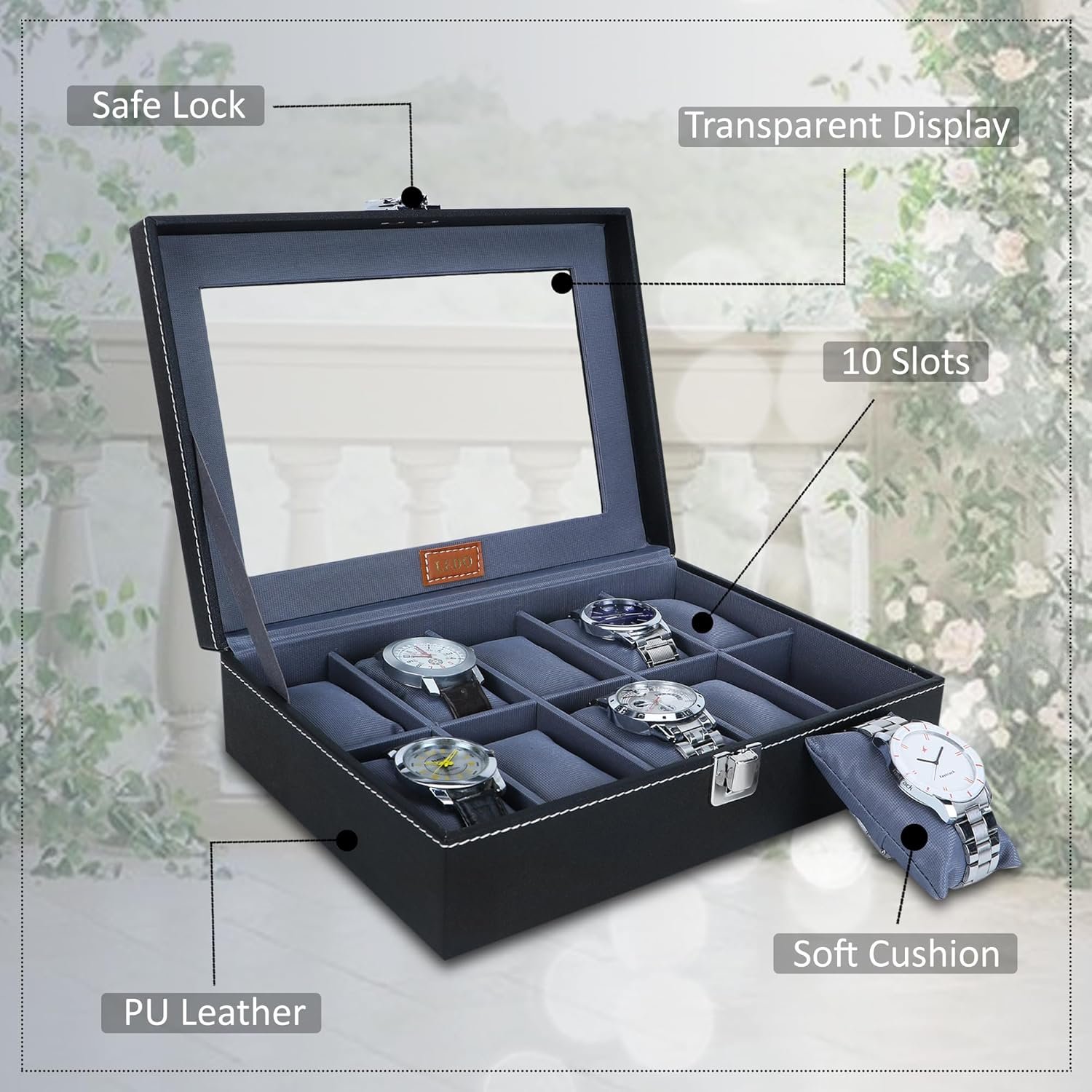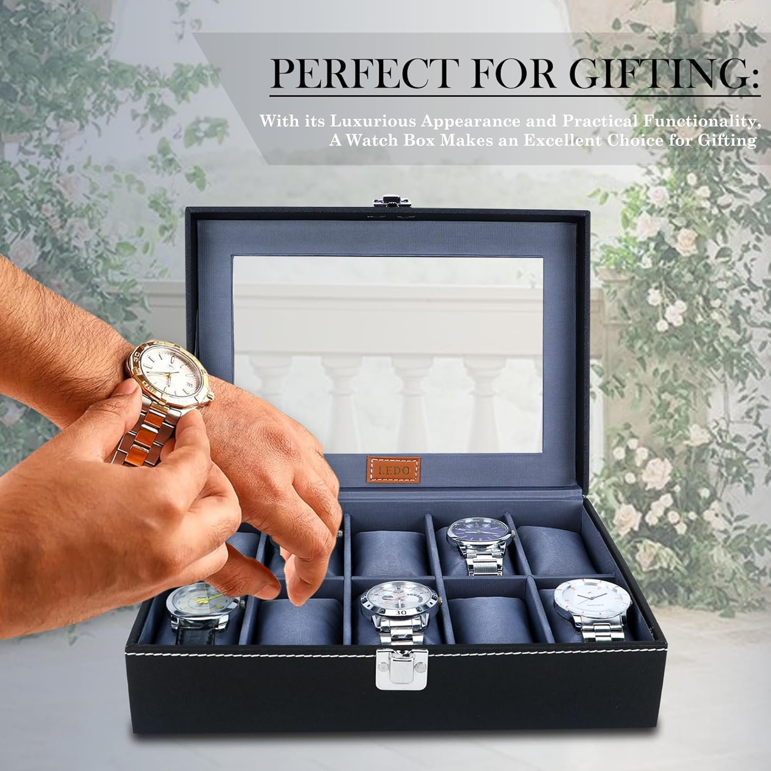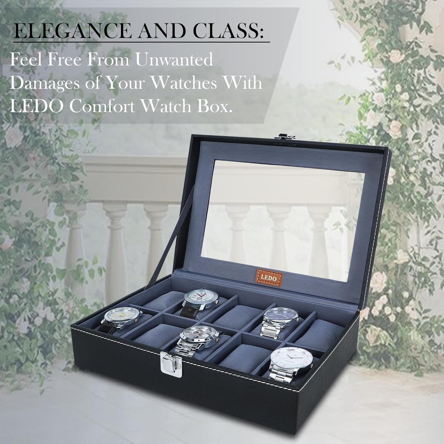 LEDO Leather Men’S And Women’S Watch Box Organizer Case In 10 Slots Of Watches In Black Color (Blackandgray)