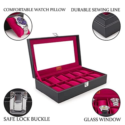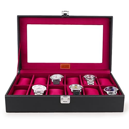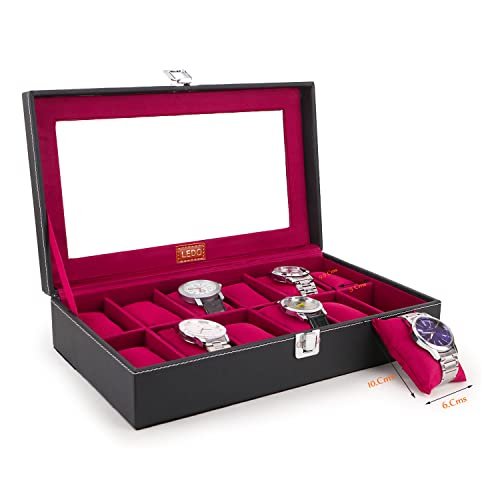 LEDO Watch Case Box Organizer in 12 slots of Watches with Transparent Glass Look