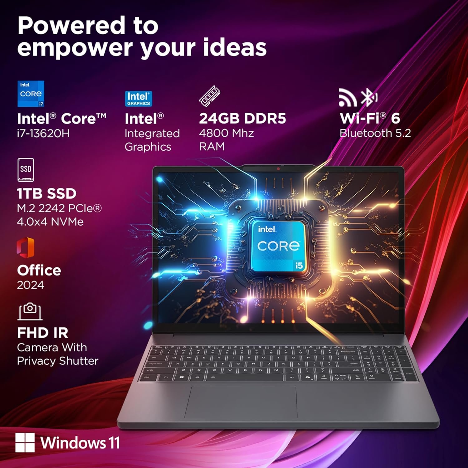 Lenovo IdeaPad Slim 3 13th Gen Core i7-13620H 15.3″ (38.8cm) WUXGA IPS Laptop (24GB RAM/1TB SSD/Win 11/Office 2024/Backlit/1Yr ADP Free/Top Metal Cover & IR Camera/Grey/1.6Kg),83K100TEIN