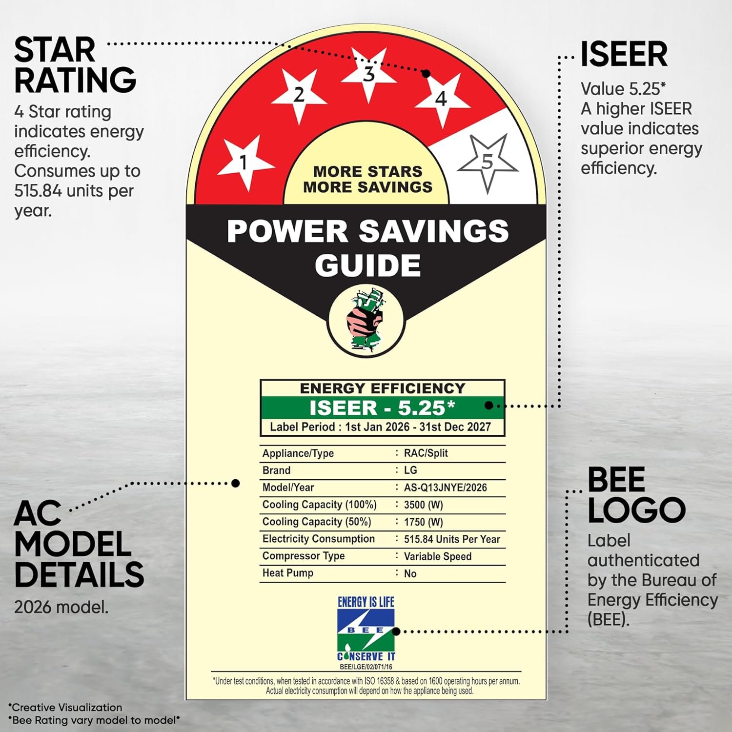 LG 1 Ton 4 Star,New star rated,DUAL Inverter Split AC (Copper, AI Convertible 6-in-1 with VIRAAT Mode,Faster Cooling & Energy Saving, 4 Way Swing, HD Filter with AntiVirus Protection,AS-Q13JNYE,White)