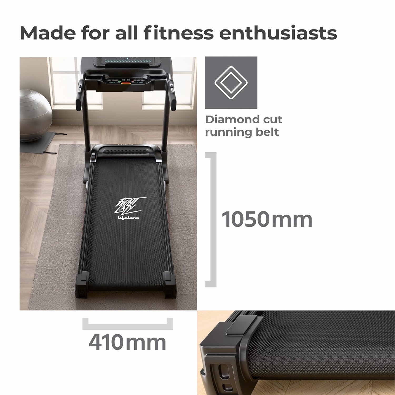 Lifelong FitPro Motorized Treadmill for Home (4HP Peak) | 3-Level Manual Incline | Rubberies Shock Absorption | Foldable Hydraulic | 12 Preset Workouts | 14km/hr | 100Kg | Bluetooth (LLTM033)