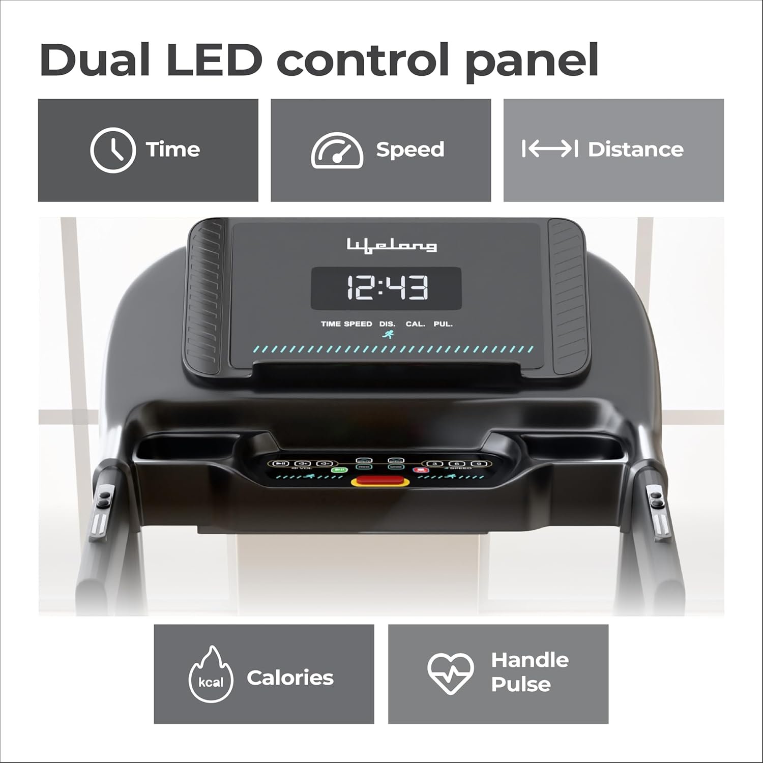 Be the first to review “Lifelong FitPro Motorized Treadmill for Home (4HP Peak) | 3-Level Manual Incline | Rubberies Shock Absorption | Foldable Hydraulic | 12 Preset Workouts | 14km/hr | 100Kg | Bluetooth (LLTM033)”
