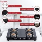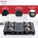 Lifelong Glass Top Gas Stove, 4 Burner Gas Stove, Black (ISI Certified,1 year warranty with Doorstep Service)