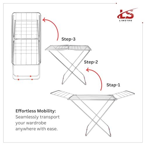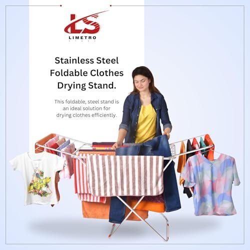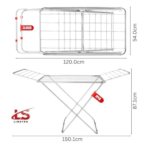 Be the first to review “LiMETRO STEEL Stainless Steel Foldable Cloth Dryer Stand Double Rack Cloth Stands for Drying Clothes Steel (Cross), 120x54x4 cm”