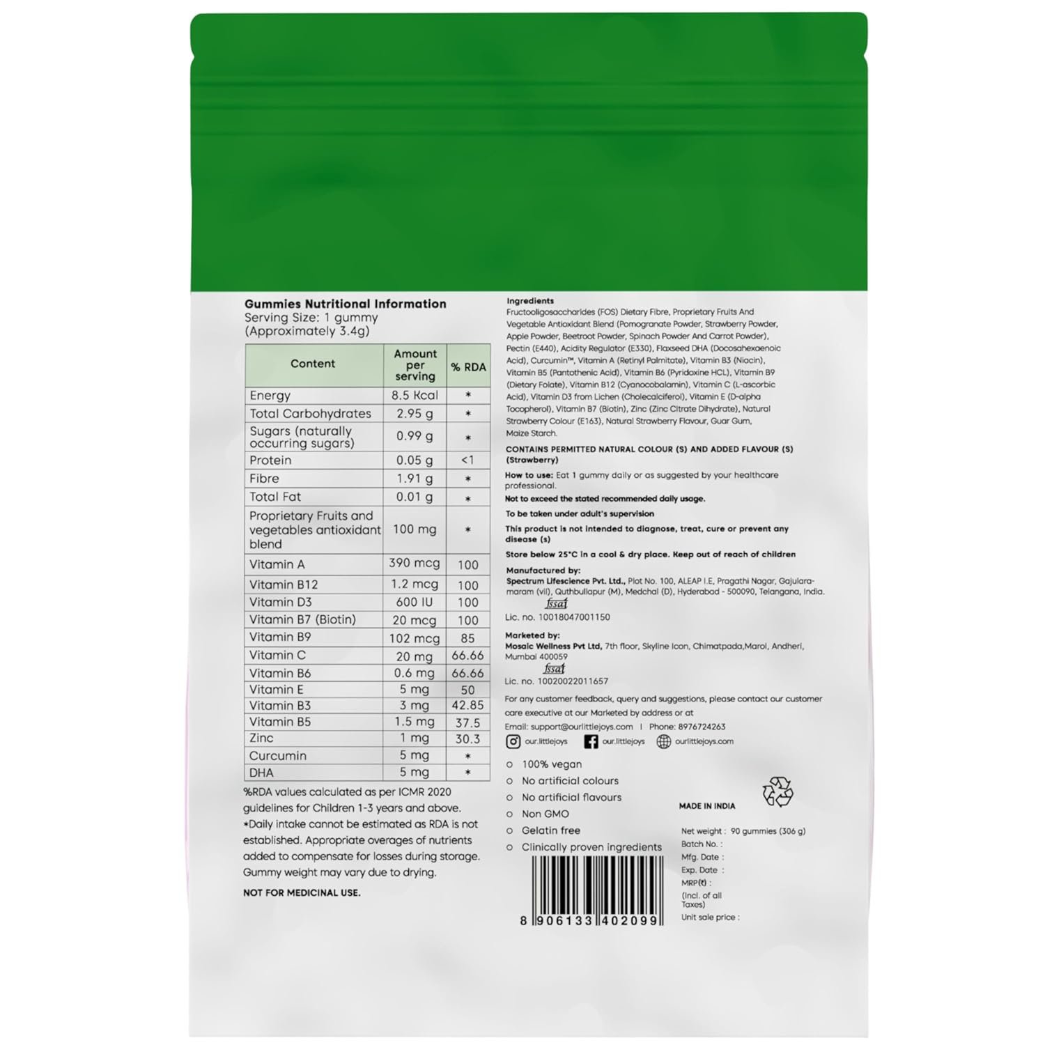 Little Joys Multivitamin Gummies Pouch for Kids (2-6 years) | 90 Days Pack | No Sugar Added | Strawberry Flavour | Boosts Immunity, Bone Density & Eyesight
