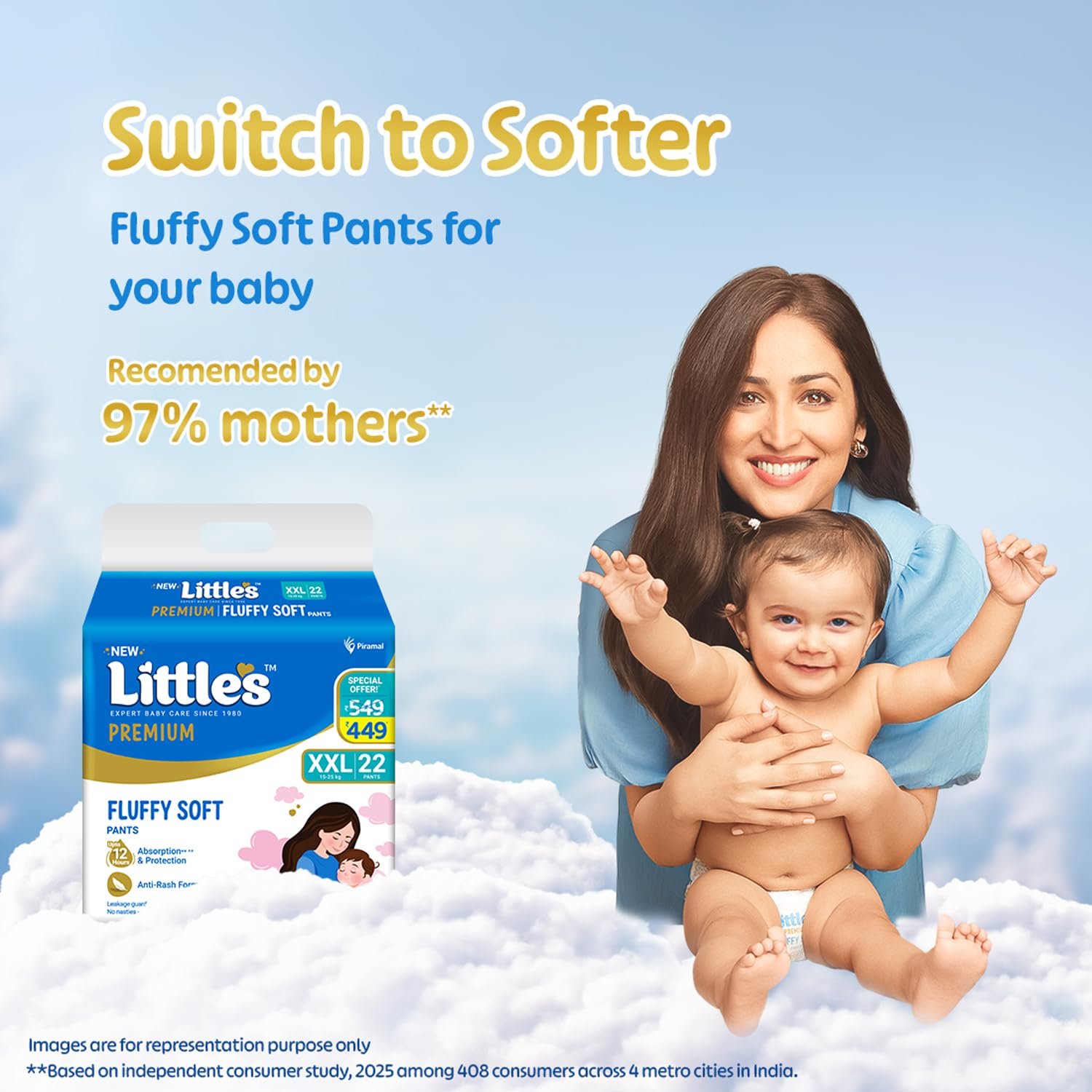 Little’s Premium Baby Diapers XXL Size | Pants Style | 15-25 kg | 44 Count | FluffySoft Baby Diaper with Leakage Guard, Wetness Indicator & 12 Hours Absorption | (22 Count, Pack of 2)