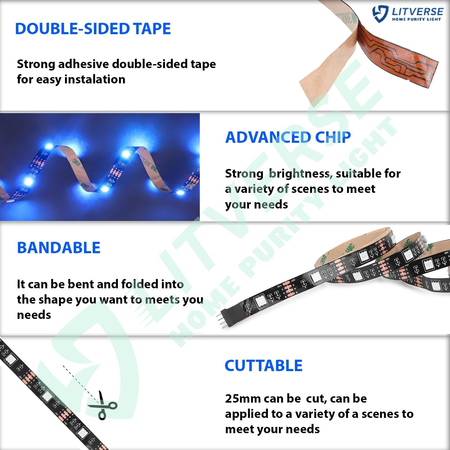 Be the first to review “LITVERSE Plastic Light Strip 2Meter | RGB 5050 Color Changing LED Strip Light With USB Cable For TV Backlight, Bedroom, Cabinet Shelf Display (2Meter-Upto 24″ To 34″-Multi)”