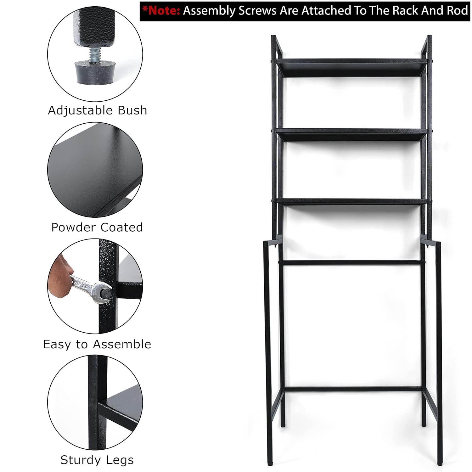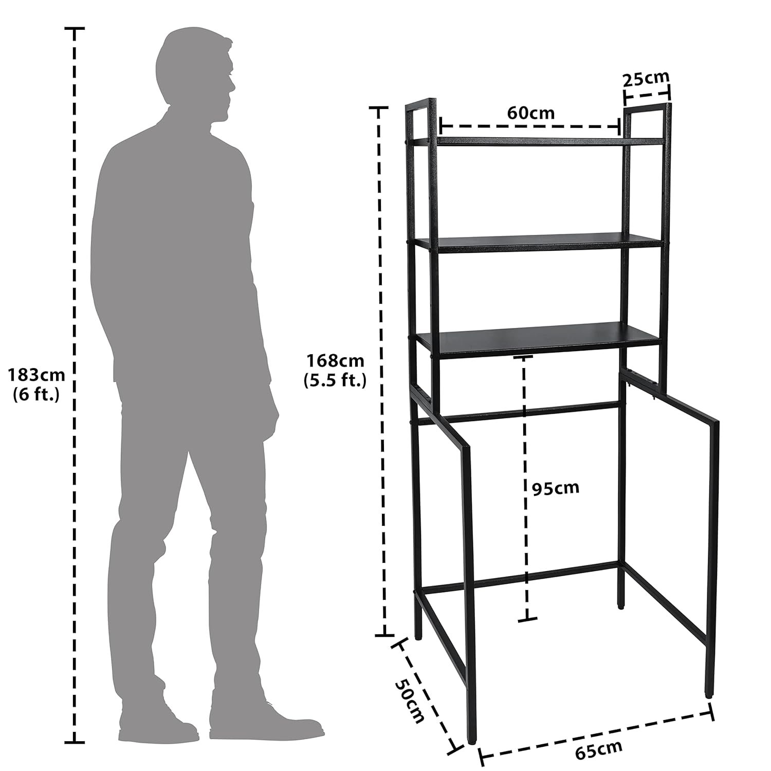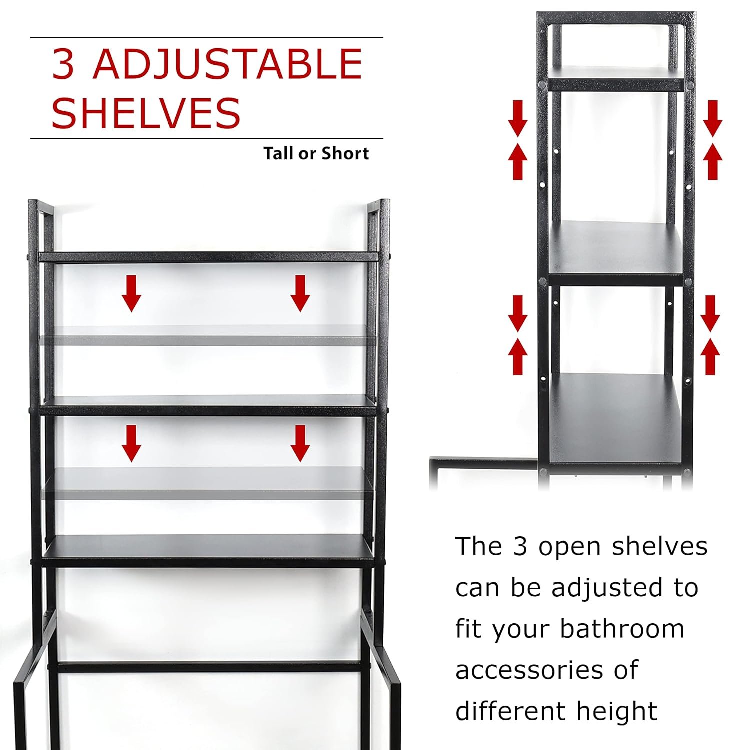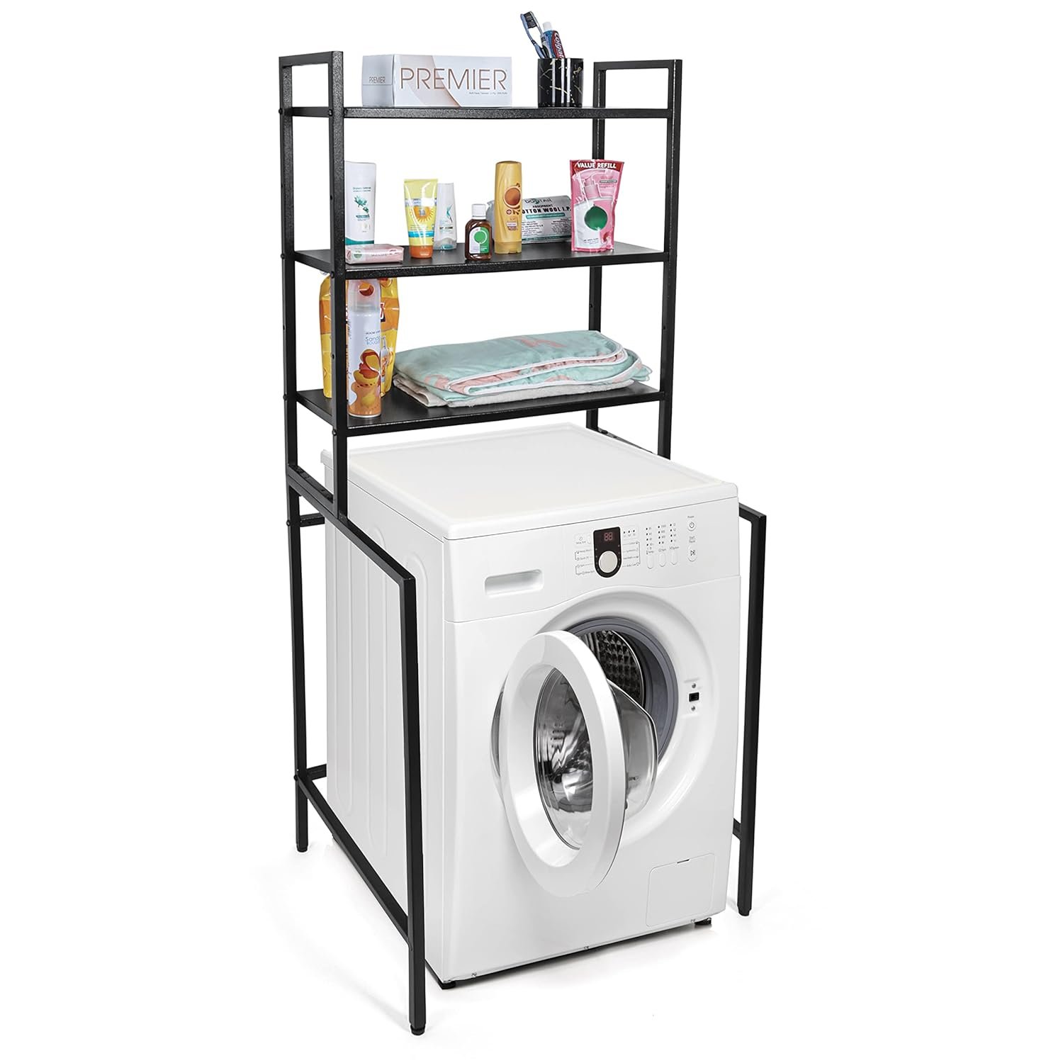Livzing 3 Tier Adjustable Over Washing Machine Storage Rack – Powder Coated Metal Over The Toilet Space Saving Organizer – Multipurpose Storage Free Standing Shelf for Bathroom