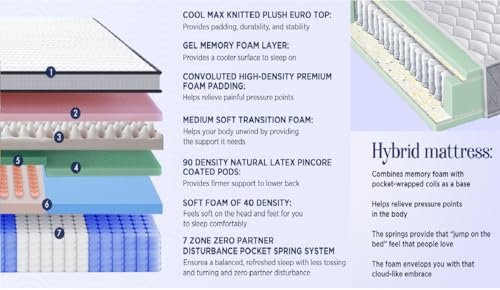 LOOM & NEEDLES 84x72x8 Inches King Size Mattress | Hybrid Latex Pocket Spring Mattress | Zero Gravity Partner Disturbance | 5 Zoned Euro Top 7 Layer Medium Firm Memory Gel Foam Eurotop Mattresses