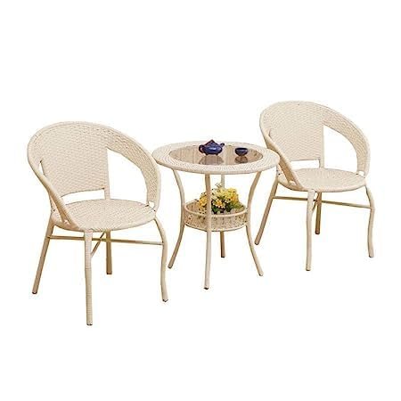 Lotey Garden Patio Seating Chair And Table Set, Outdoor Balcony Garden Coffee Table Set Furniture (2+1) (Cream) – Rattan