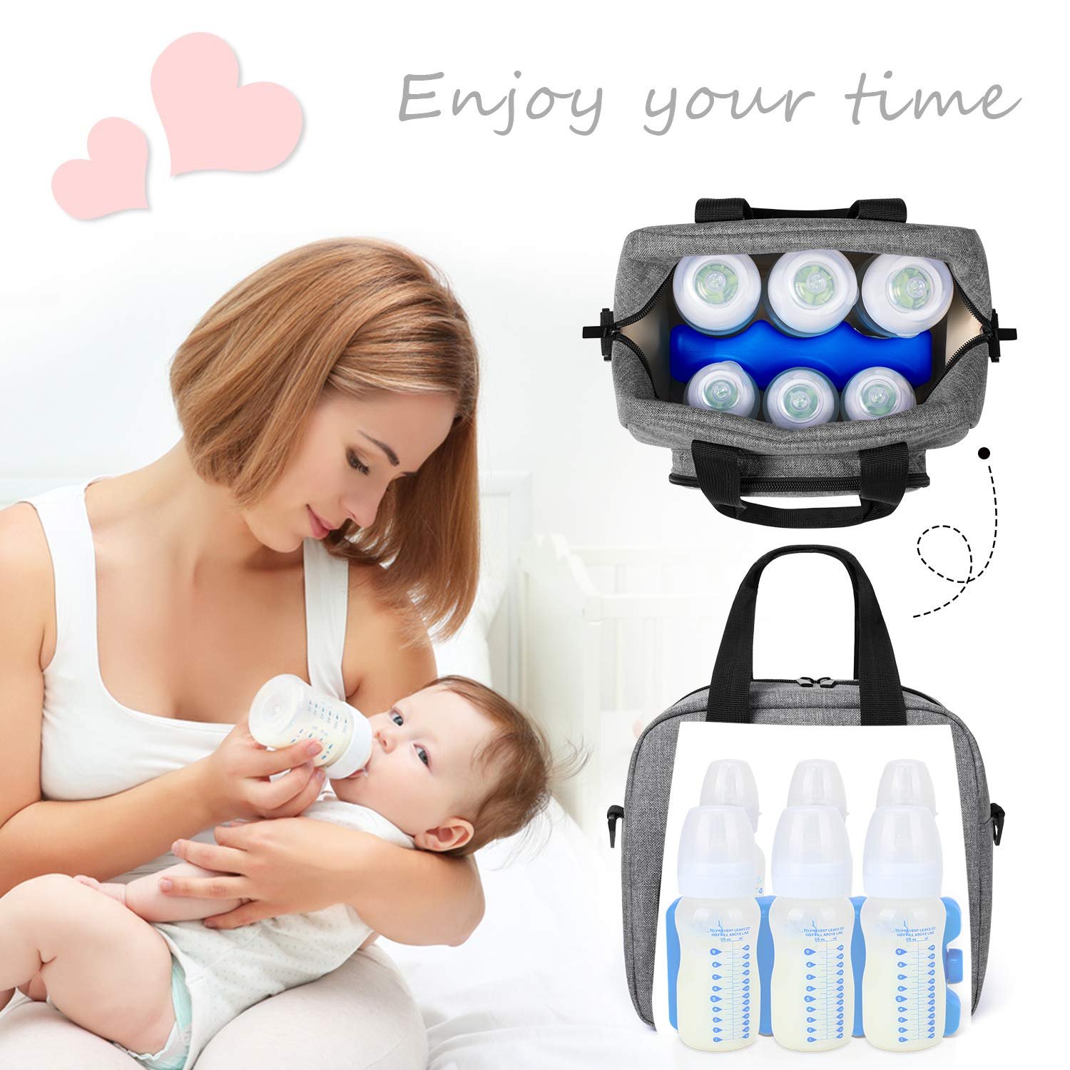 Luxja Breastmilk Cooler Bag with an Ice Pack (Hold 6 Breastmilk Bottles, 5-9 Ounces), Leakproof Cooler Bag for Breast Milk and Bottle Set, Gray