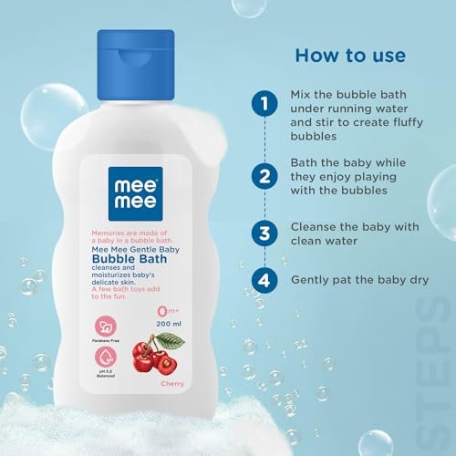 Mee Mee Foamy Baby Mild Bubble Bath 200ml, Pack of 1 | With Cherry & Fruit Extracts | Tear-Free Moisturizes and Soothes Skin | Infant Friendly, Natural Head to Toe Baby Wash, Dermatologically Tested