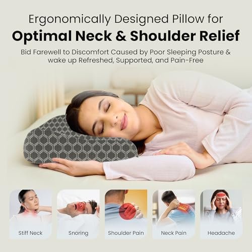 Be the first to review “Memory Foam Cervical Neck Pillow | 2 Years Warranty | Pain Relief Sleep, Improves Posture Spinal Alignment, Neck Pain Relief | Medium 21 x 13 x 4 Inch | Black acquard Cover | Pack of 2”