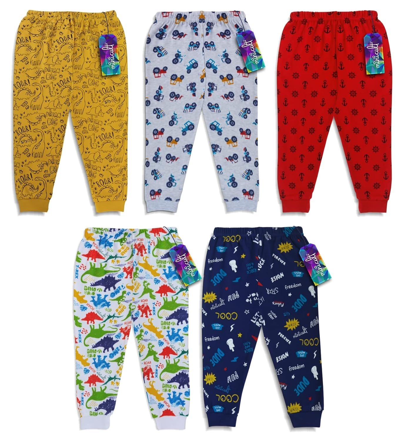 Be the first to review “minicult Cotton Pajama Pants with All Over Print for Boys and Girls (Multicolor Designs)(Pack of 5)”